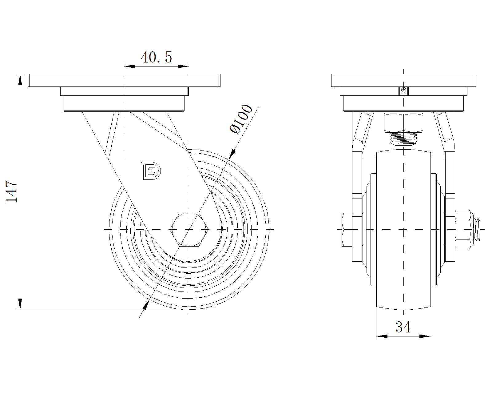 | Bánh xe QPU (hồ quang nâu) đường kính bánh xe × chiều rộng bánh xe 100 x 34mm |