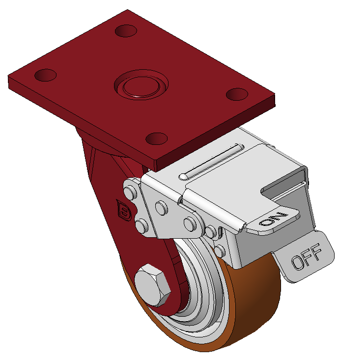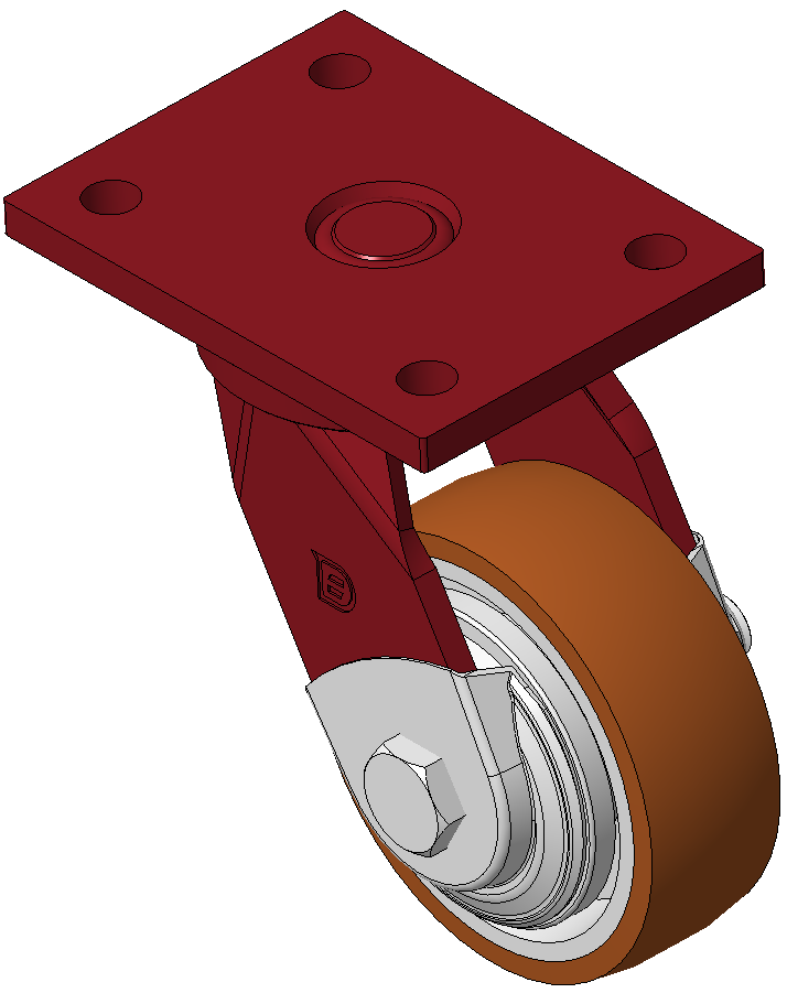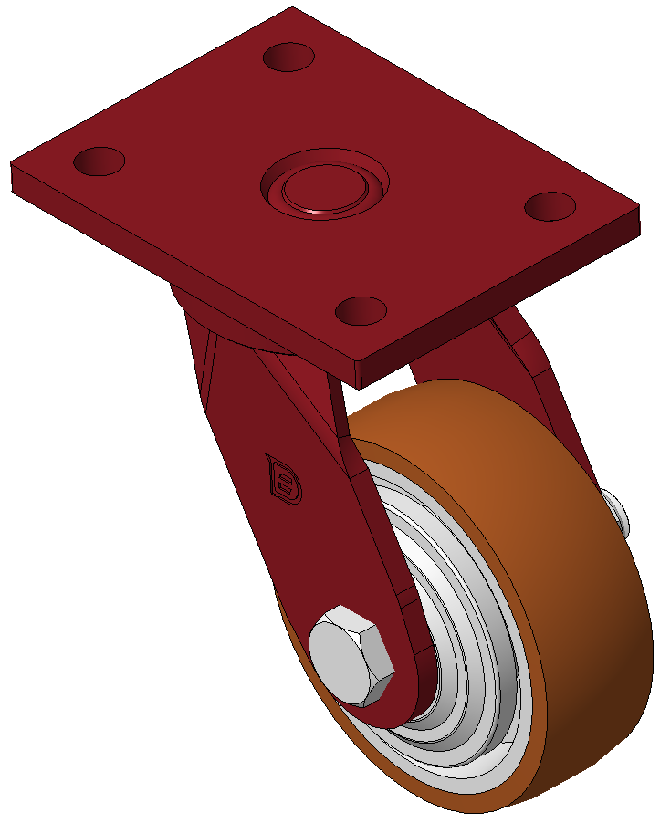 Hoàn thiện sơn đỏ, lắp đế, khoảng cách lỗ 90x60 Lõi gang với gai polyurethane chất lượng cao, màu nâu phay Vòng bi bánh xe—vòng bi chính xác |