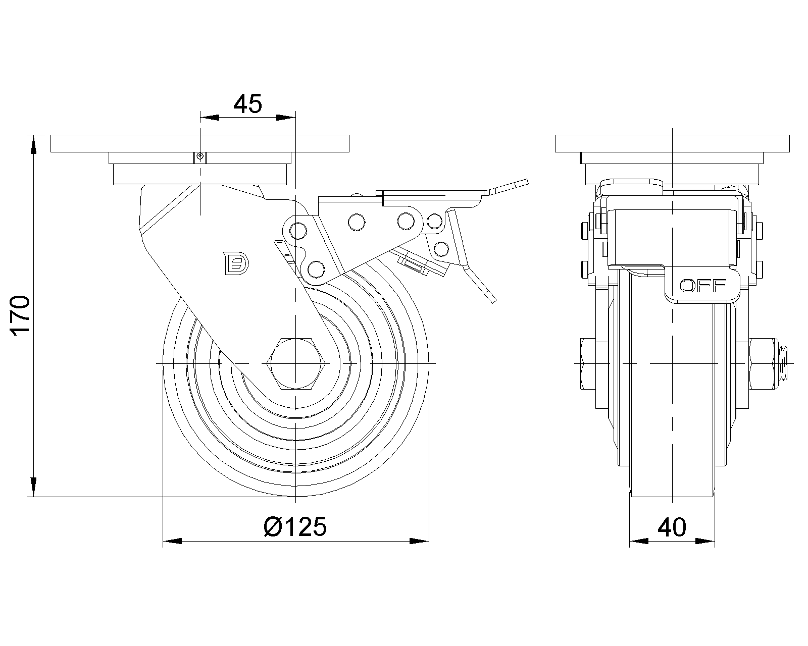 | Bánh xe QPU (nâu phẳng) Đường kính bánh xe × Chiều rộng bánh xe 125 x 40mm |