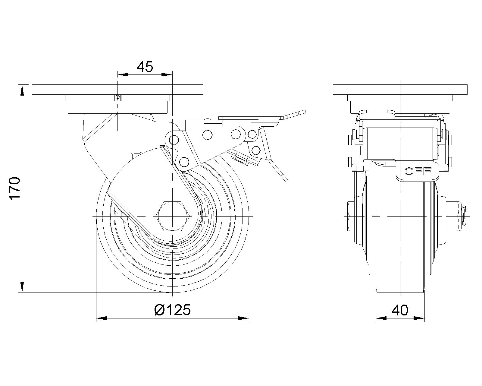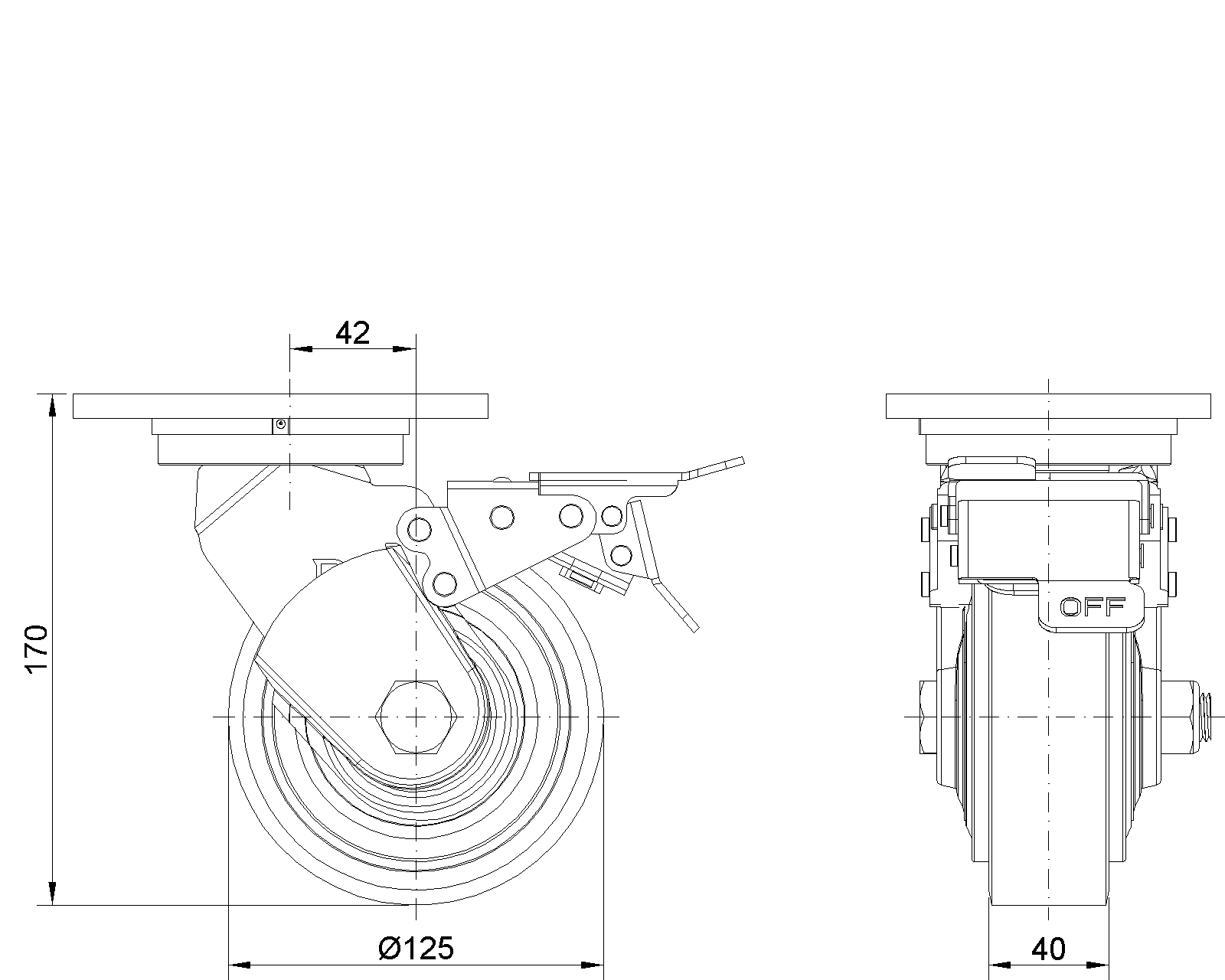 | Bánh xe QPU (nâu phẳng) Đường kính bánh xe × Chiều rộng bánh xe 125 x 40mm |