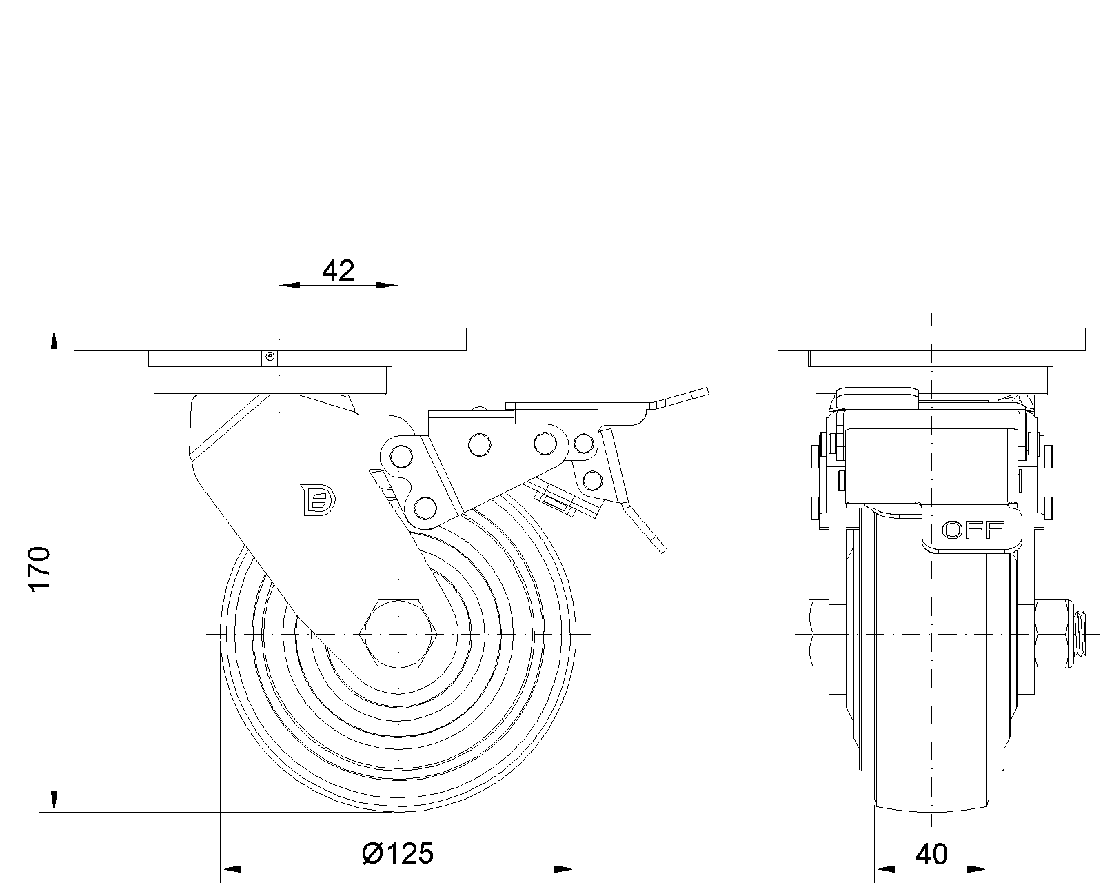 | Bánh xe QPU (Màu nâu vòng cung) đường kính bánh xe × chiều rộng bánh xe 125 x 40mm |