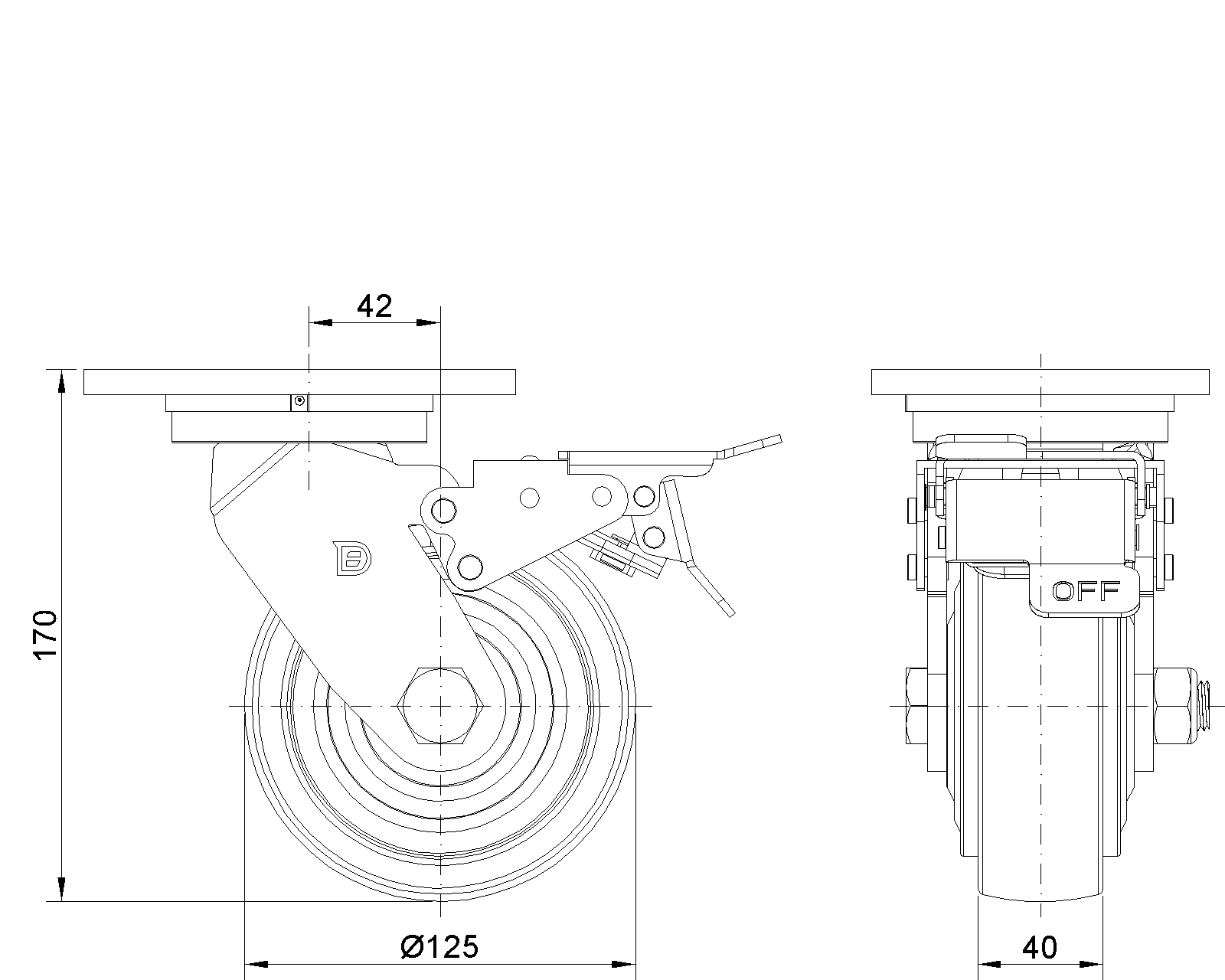 | Bánh xe MRC (trong suốt) Đường kính bánh xe × Chiều rộng bánh xe 125 x 40mm |