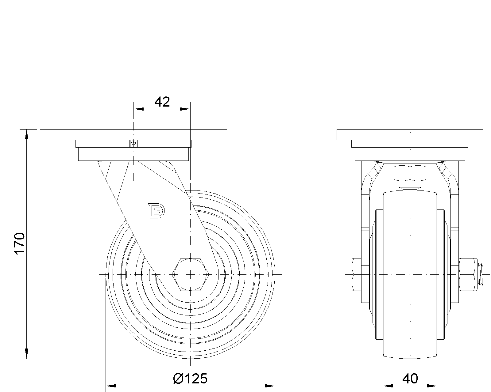 | Bánh xe PU (vòng cung đỏ) Đường kính bánh xe × Chiều rộng bánh xe 125 × 40mm |