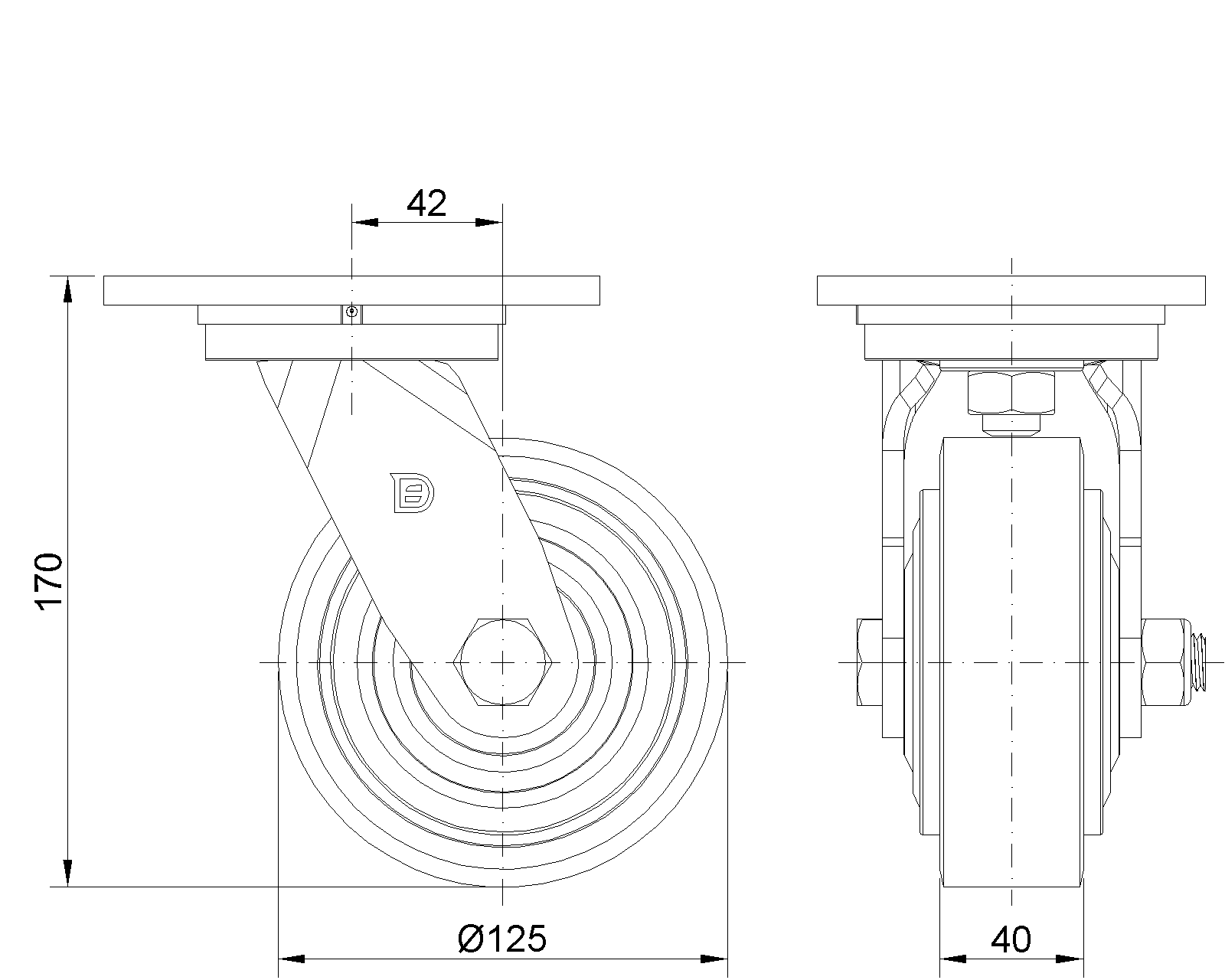 | Bánh xe QPU (nâu phẳng) Đường kính bánh xe × Chiều rộng bánh xe 125 x 40mm |