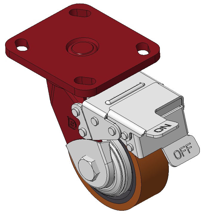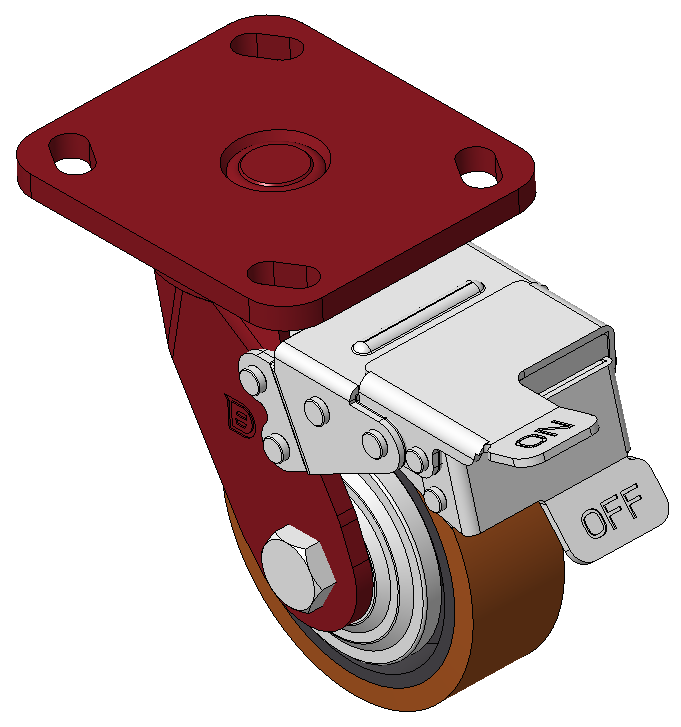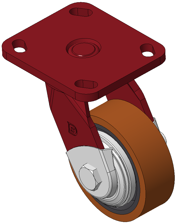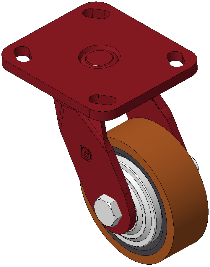 Hoàn thiện sơn đỏ, lắp đế, khoảng cách lỗ 85x70 Lõi gang với gai polyurethane chất lượng cao, phay màu nâu Vòng bi bánh xe—vòng bi chính xác với nắp chống quấn đặc biệt |