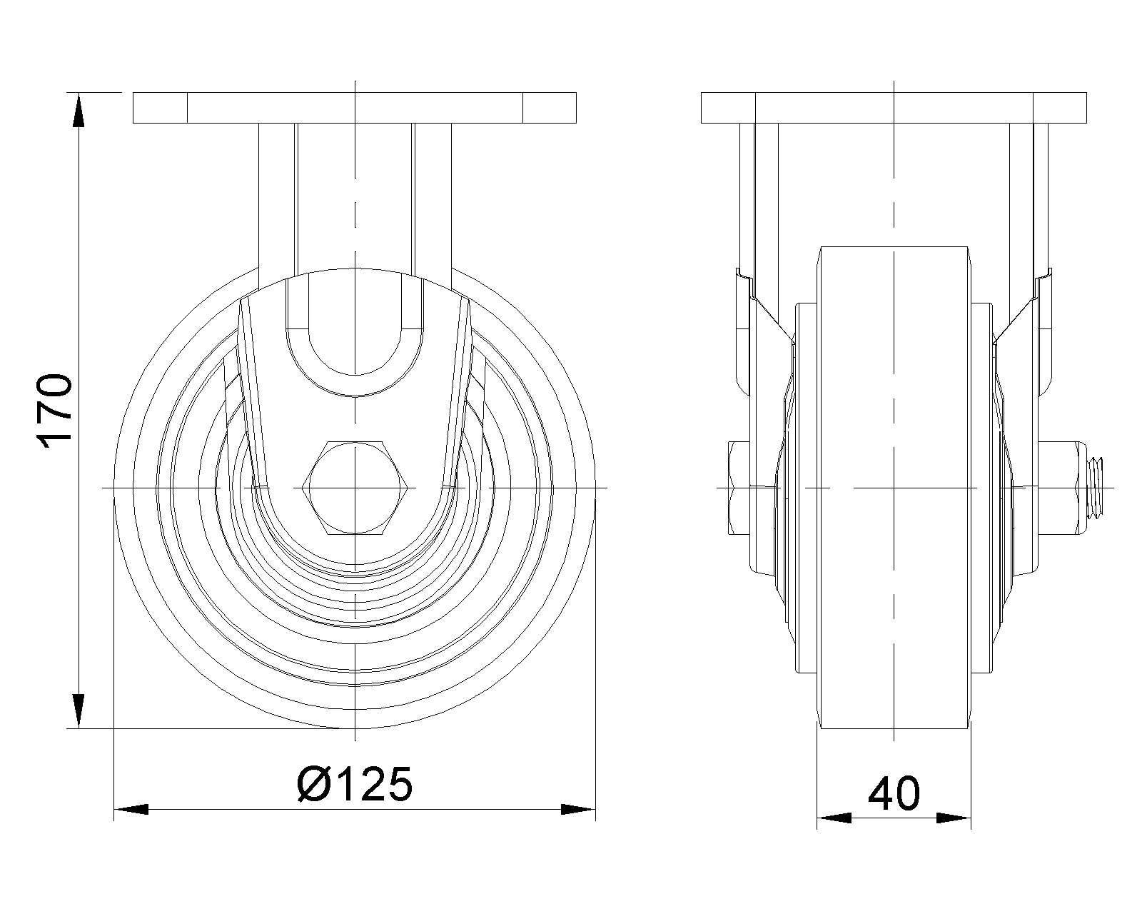 | Bánh xe PU(bánh phẳng màu đỏ) đường kính bánh xe × chiều rộng bánh xe là 125 × 40 mm. |