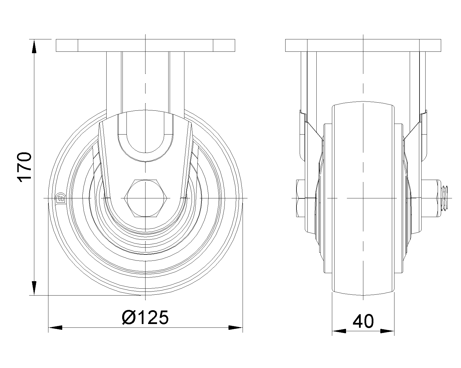 | Bánh xe cố định, khung thép hàn, sơn phủ màu đỏ Lắp đế, khoảng cách lỗ 85x70 Lõi bánh xe bằng nhựa nhiệt dẻo, gai bánh xe tự nhiên Vòng bi bánh xe—vòng bi chính xác với nắp chống quấn đặc biệt |