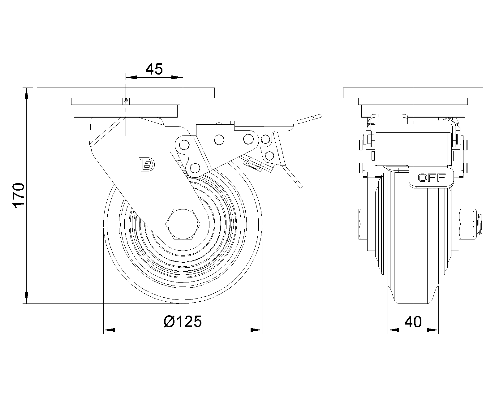 | Kéo NBR Wheel (Mill Raw) Đường kính bánh xe × Chiều rộng bánh xe 125 x 40mm |