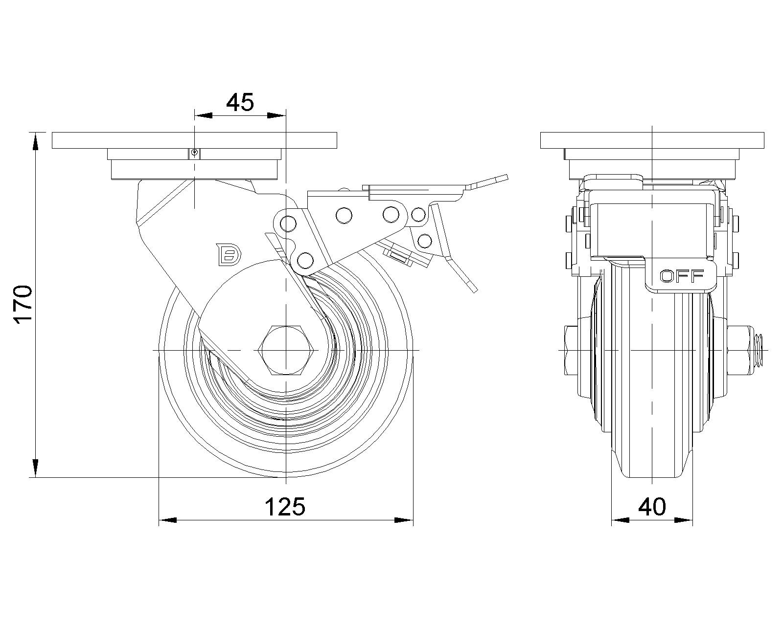 | Kéo NBR Wheel (Mill Raw) Đường kính bánh xe × Chiều rộng bánh xe 125 x 40mm |