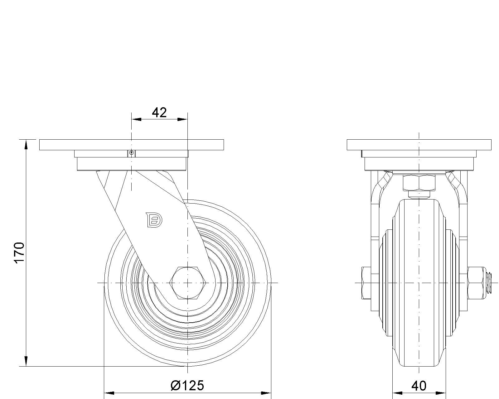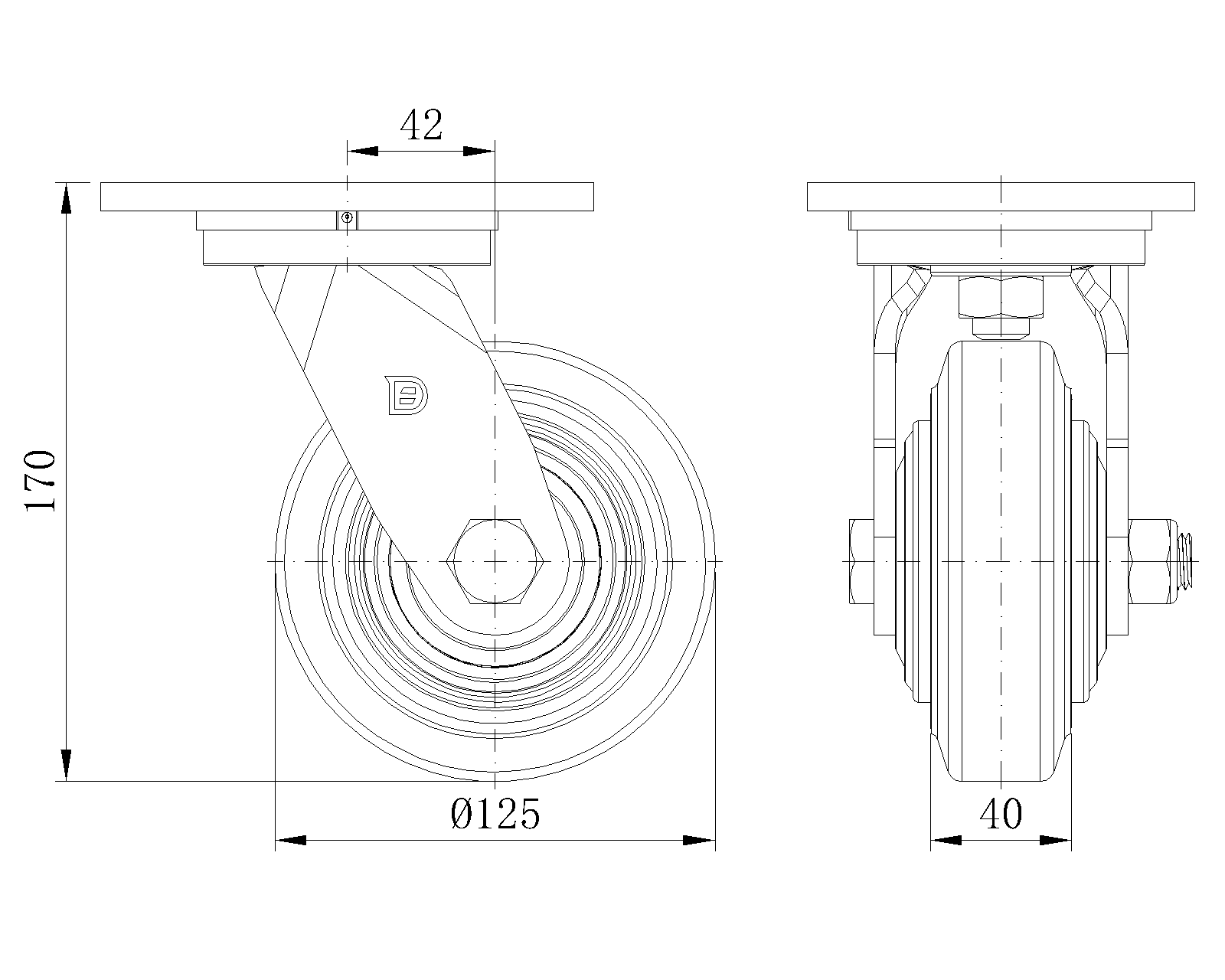 | Kéo NBR Wheel (Mill Raw) Đường kính bánh xe × Chiều rộng bánh xe 125 x 40mm |