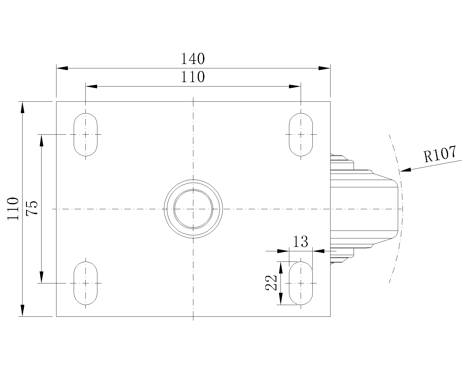 Lắp đế, khoảng cách lỗ 110x75 Lõi gang, mặt cao su đàn hồi cao, chất lượng cao Hoàn thiện phay, vòng bi chính xác |