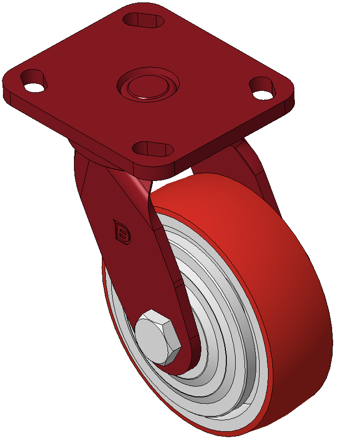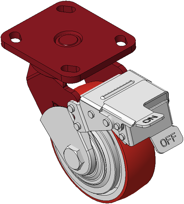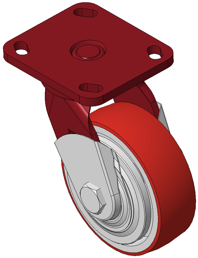 Lắp đế, khoảng cách lỗ 85x70 Lõi bánh xe bằng gang, gai polyurethane chất lượng cao, phay màu đỏ Vòng bi bánh xe—vòng bi chính xác với nắp bánh xe chống quấn đặc biệt |