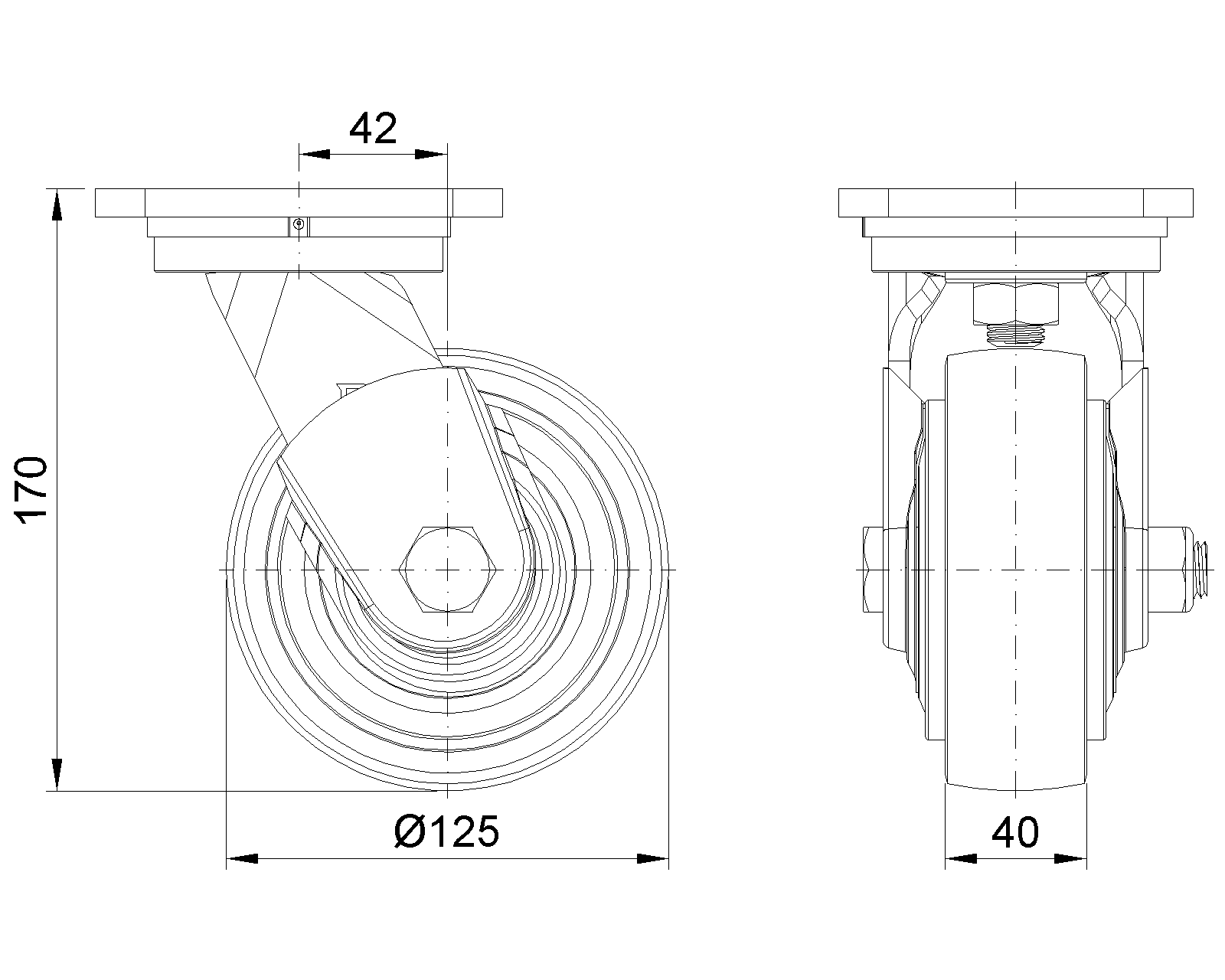 đơn vị mét đế quốc Đường kính bánh xe 125mm Chiều rộng bánh xe 40mm |