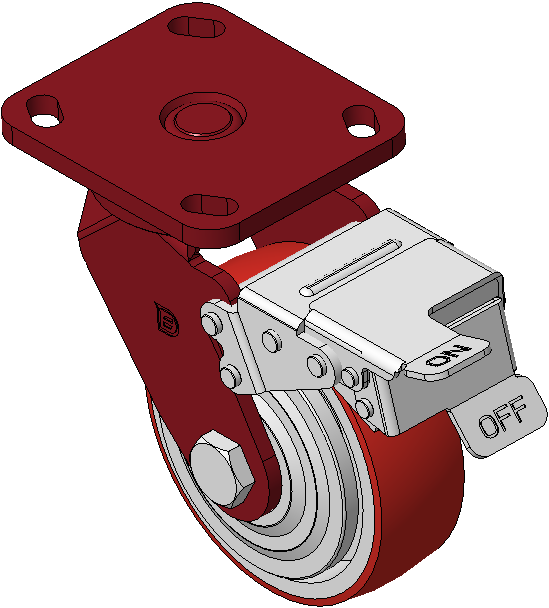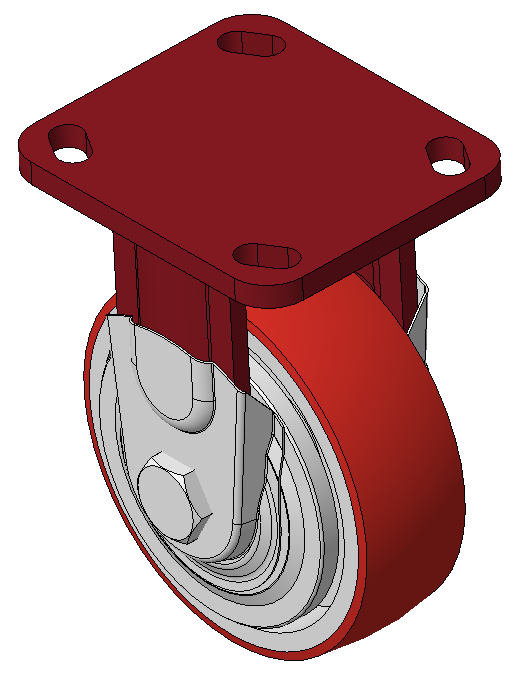 | Bánh xe xoay với khung thép hàn, sơn phủ màu đỏ.