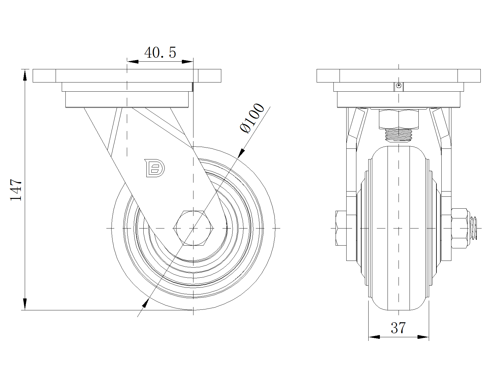 | Kéo NBR Wheel (Mill Raw) Đường kính bánh xe × Chiều rộng bánh xe 100 x 37mm |