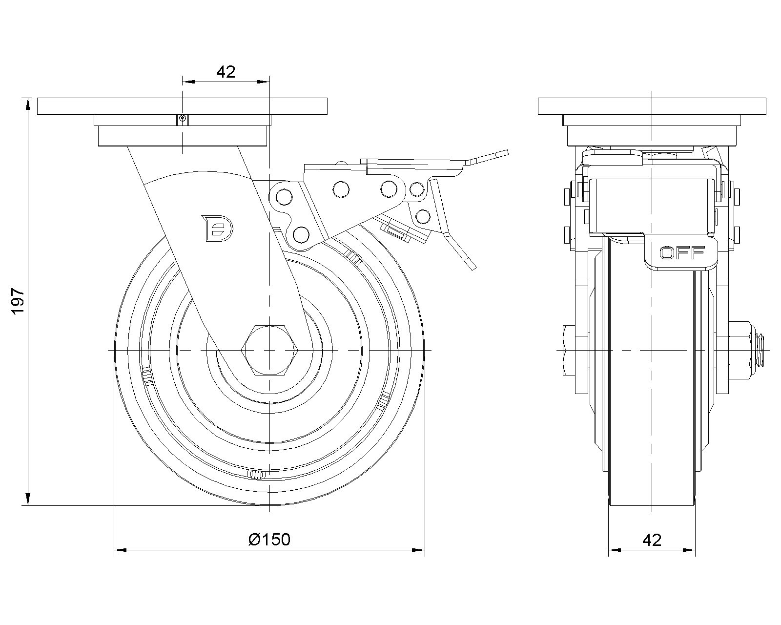 | Bánh PU (Đỏ Bình) Đường kính bánh × Chiều rộng bánh 150 × 42 mm |