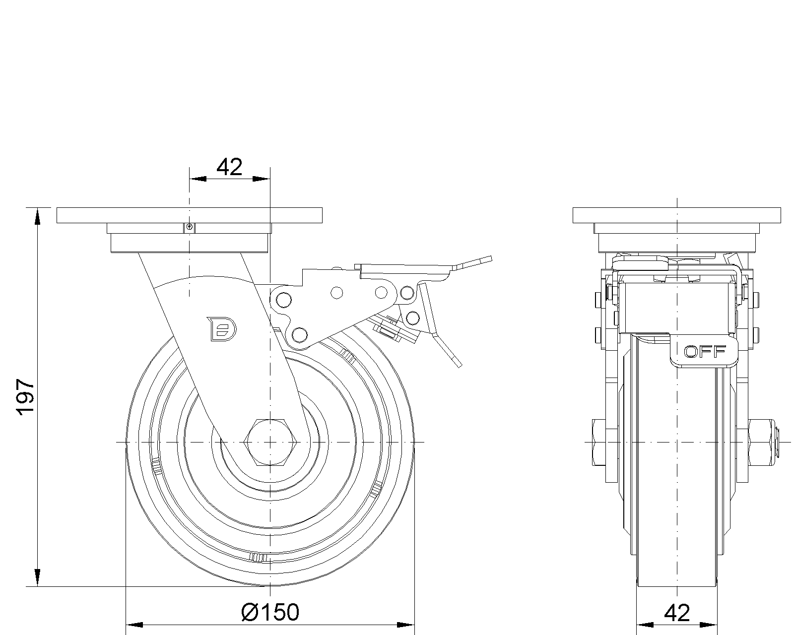 | Bánh xe QPU (nâu phẳng) Đường kính bánh xe × Chiều rộng bánh xe 150 x 42mm |