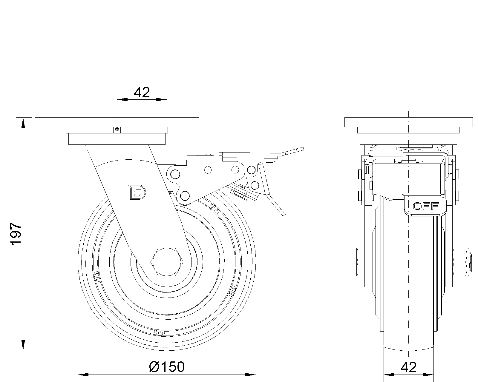 | Bánh xe QPU (Màu nâu vòng cung) đường kính bánh xe × chiều rộng bánh xe 150 x 42mm |