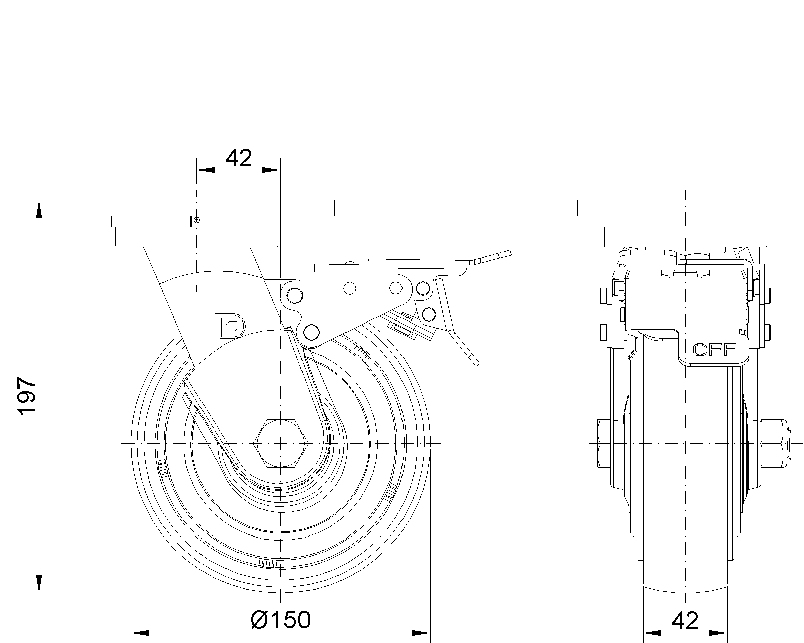 | Bánh xe QPU (Màu nâu vòng cung) đường kính bánh xe × chiều rộng bánh xe 150 x 42mm |