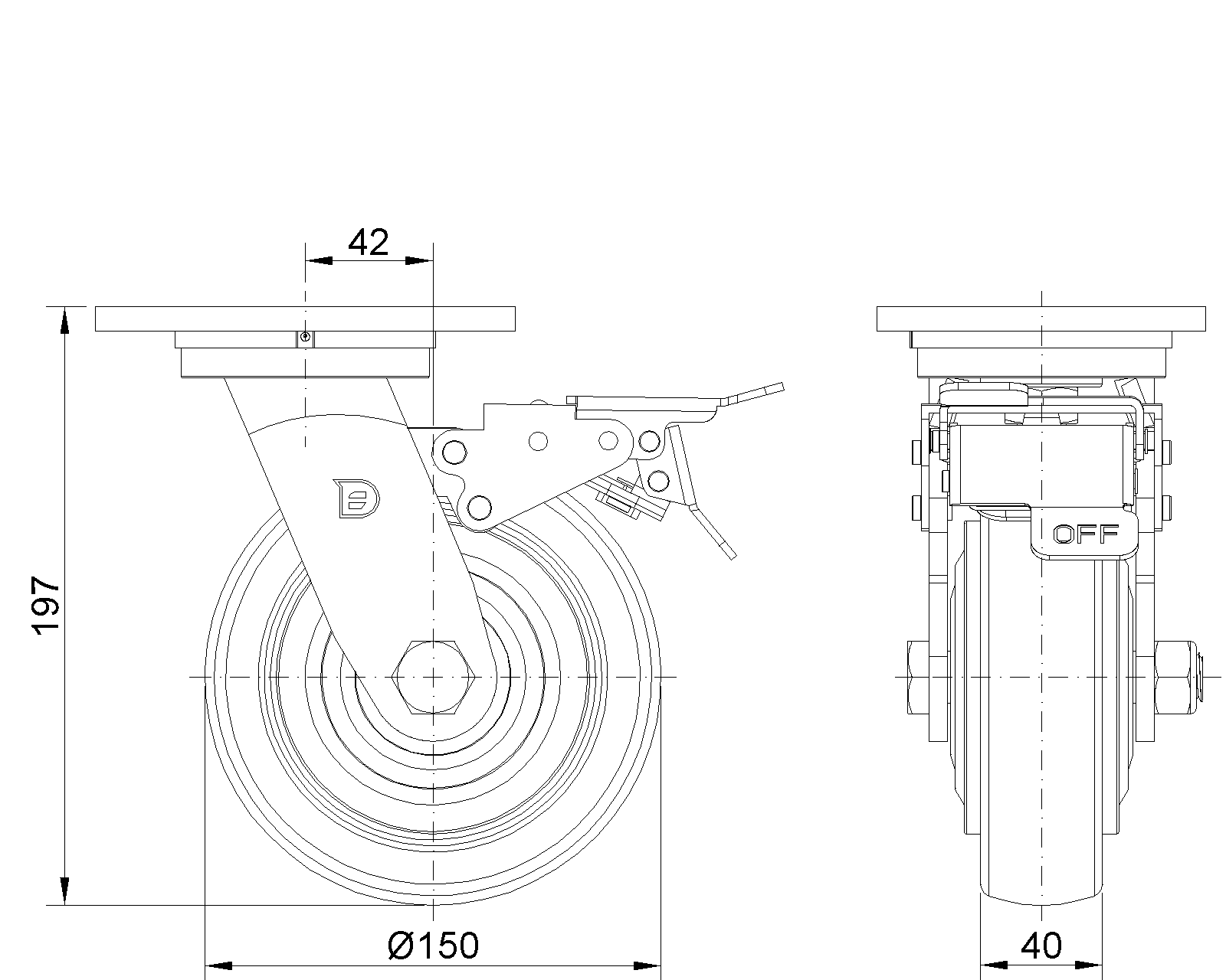 | Bánh xe MRC (trong suốt) Đường kính bánh xe × Chiều rộng bánh xe 150 x 40mm |