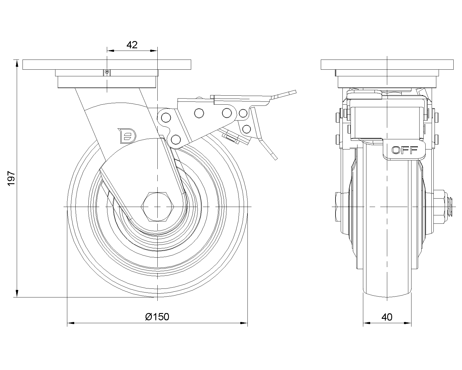 | Bánh xe MRC (trong suốt) Đường kính bánh xe × Chiều rộng bánh xe 150 x 40mm |