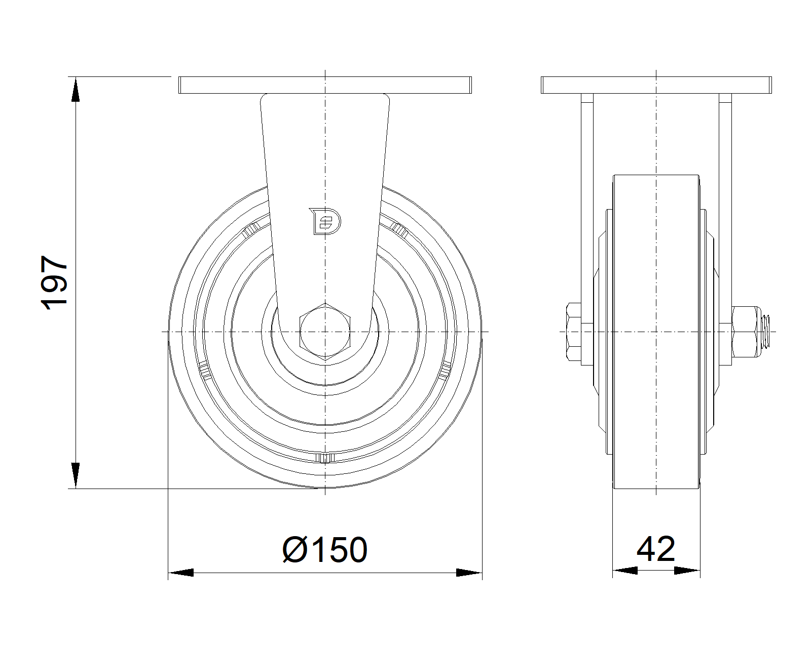 | Bánh PU (Đỏ Bình) Đường kính bánh × Chiều rộng bánh 150 × 42 mm |
