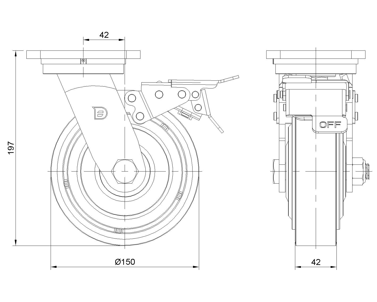| Bánh PU (Đỏ Bình) Đường kính bánh × Chiều rộng bánh 150 × 42 mm |