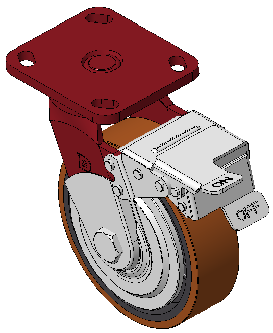 | Bánh xe có phanh trước và hệ thống khóa, khung thép hàn Sơn đỏ, lắp đế, khoảng cách lỗ 85x70 Lõi bánh xe bằng gang, gai polyurethane chất lượng cao, màu nâu phay Vòng bi bánh xe – vòng bi bi chính xác |