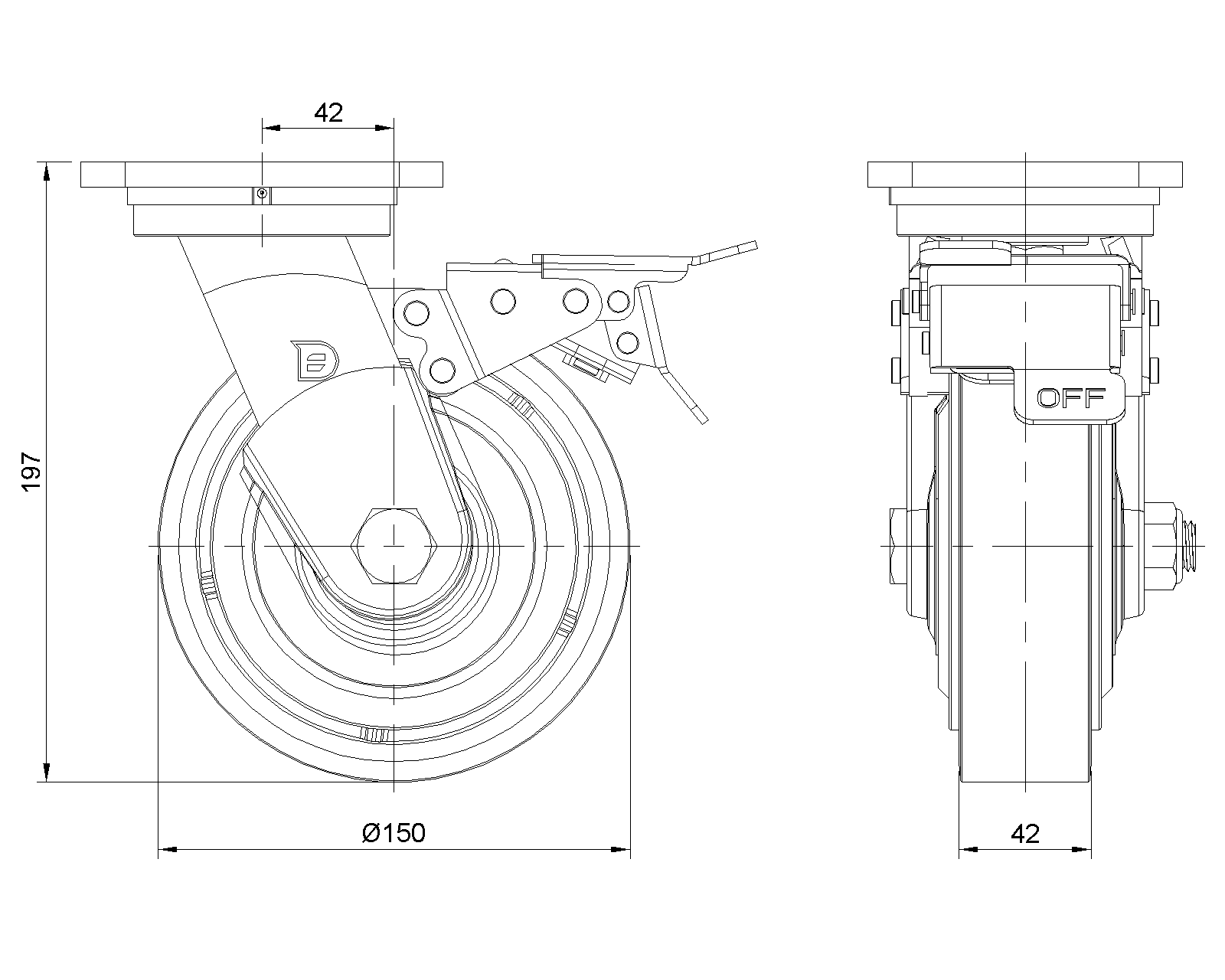 | Bánh xe QPU (nâu phẳng) Đường kính bánh xe × Chiều rộng bánh xe 150 x 42mm |