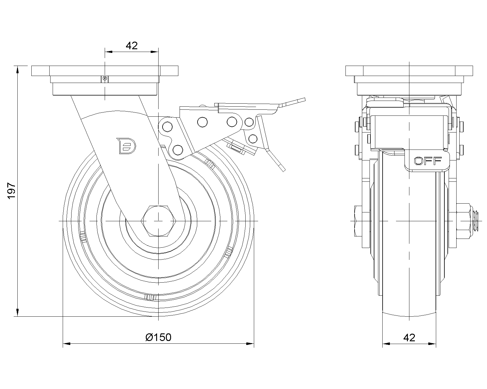 | Bánh xe QPU (Màu nâu vòng cung) đường kính bánh xe × chiều rộng bánh xe 150 x 42mm |