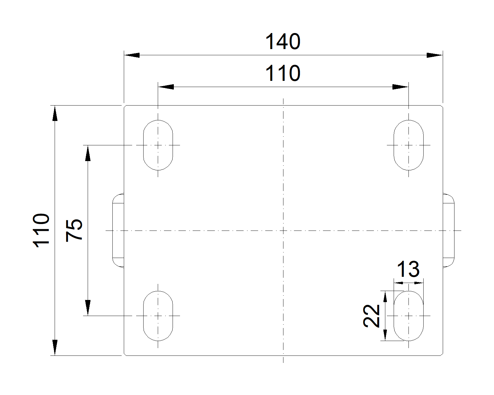 Quy cách tấm lắp 140 x 110mm khoảng cách các lỗ trên tấm nền 110x75mm Khoảng cách các lỗ lắp 22 x 13mm Tổng chiều cao 197mm Độ cứng 85±5° Shore A Tải trọng (động) 300kgs |