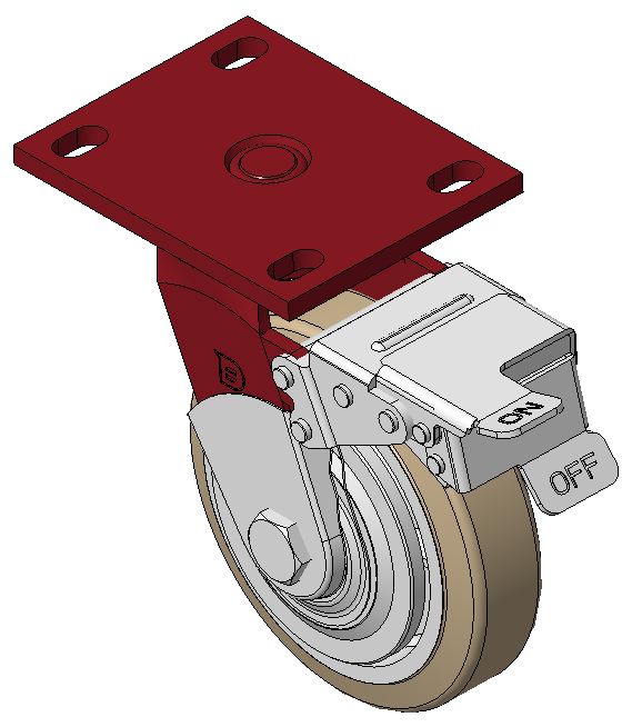 Hoàn thiện sơn đỏ, lắp đế, khoảng cách lỗ 110x75 Lõi gang, mặt lốp cao su đàn hồi cao chất lượng cao, phay màu tự nhiên Vòng bi bánh xe—vòng bi chính xác với nắp bánh xe chống quấn đặc biệt |