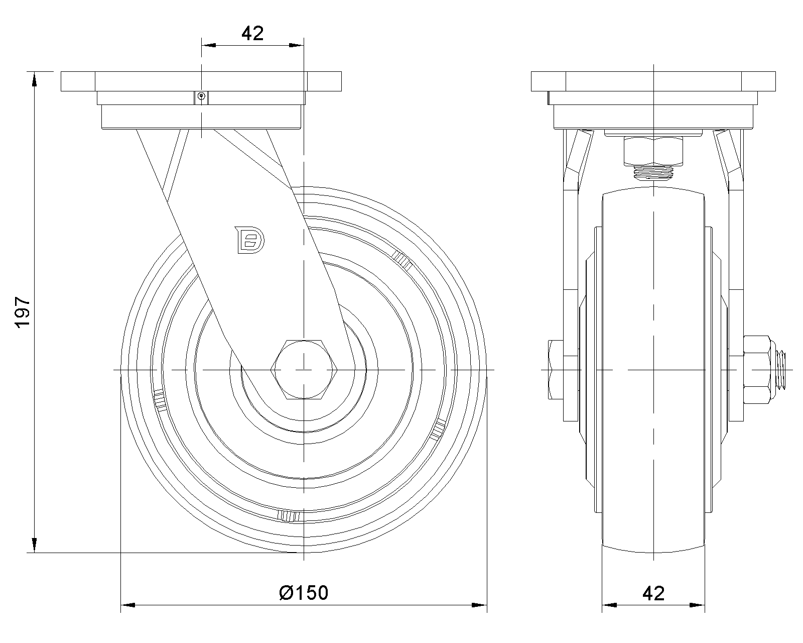 | Bánh xe PU (vòng cung đỏ) Đường kính bánh xe × Chiều rộng bánh xe 150x 42mm |