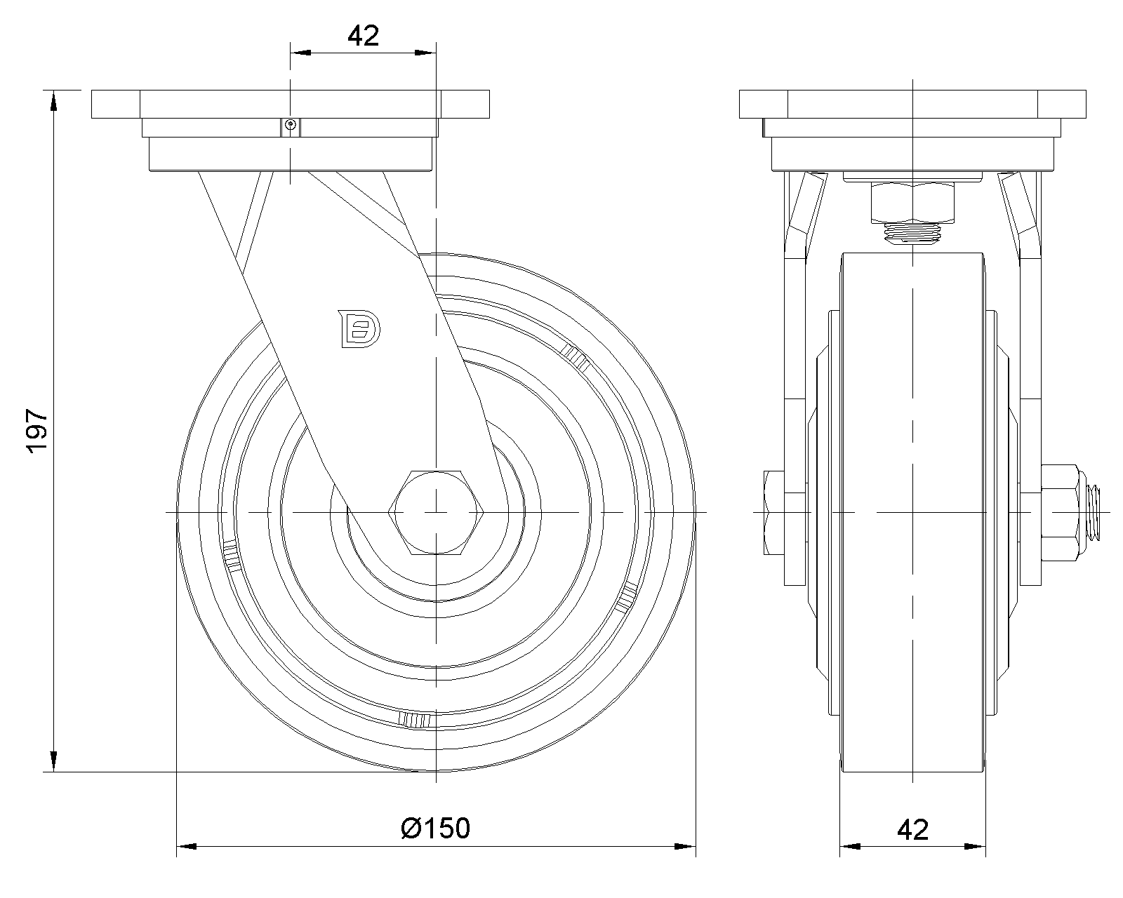 | Bánh xe QPU (nâu phẳng) Đường kính bánh xe × Chiều rộng bánh xe 150 x 42mm |