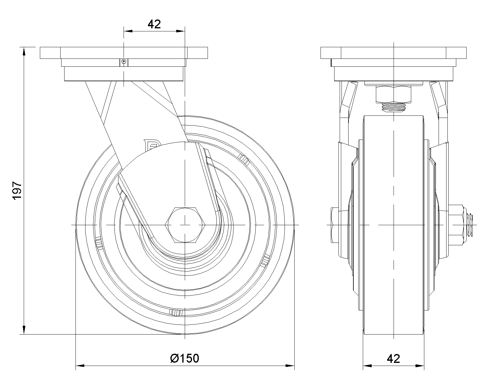 | Bánh xe QPU (nâu phẳng) Đường kính bánh xe × Chiều rộng bánh xe 150 x 42mm |