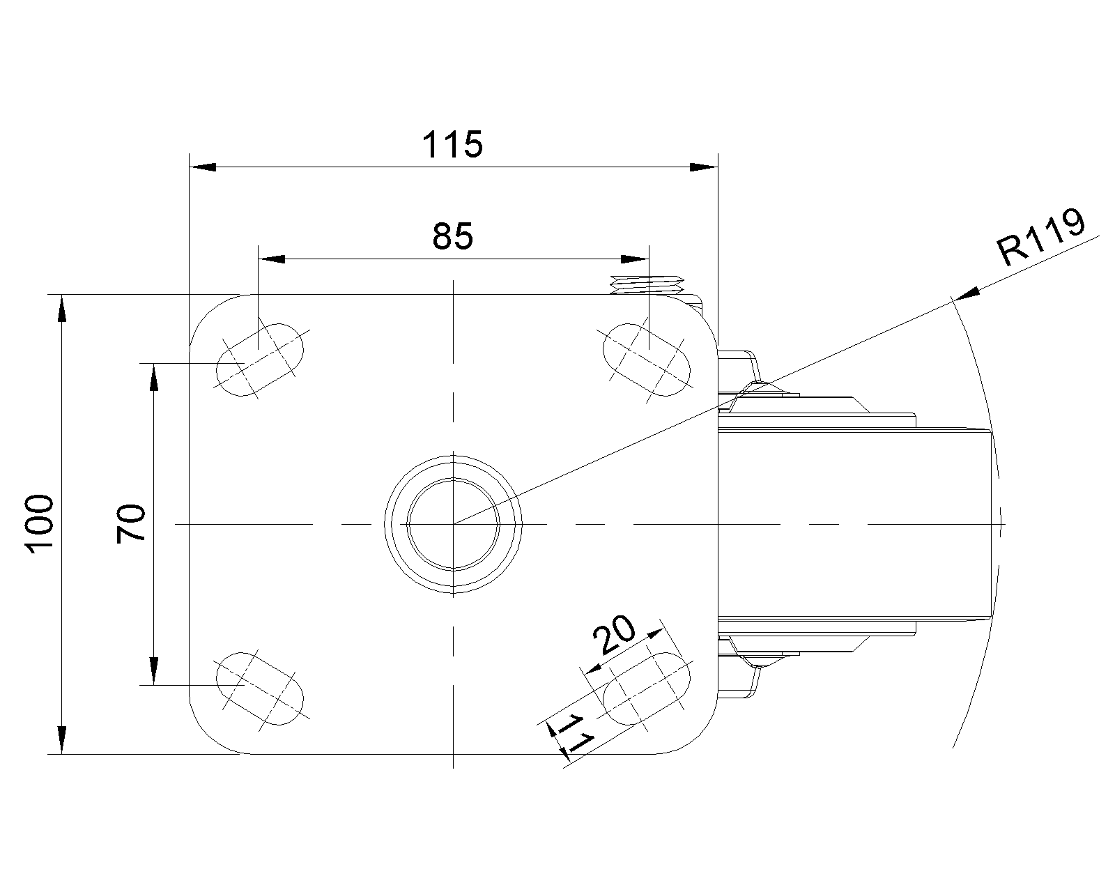 Bánh xe xoay với khung thép hàn, sơn phủ màu đỏ Lắp đế, khoảng cách lỗ 85x70 Lõi gang với gai polyurethane chất lượng cao, phay màu nâu Vòng bi bánh xe—vòng bi chính xác với nắp chống quấn đặc biệt |