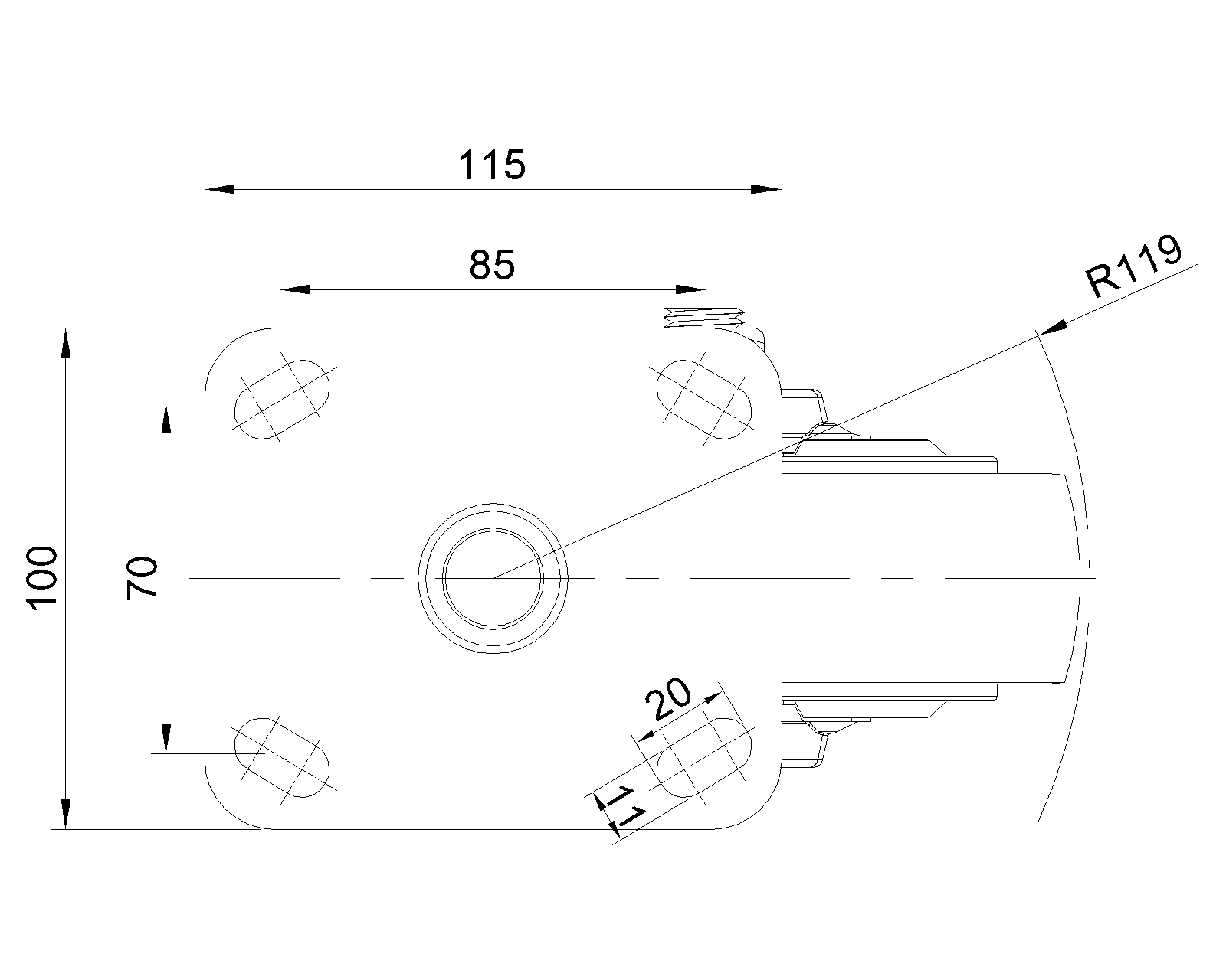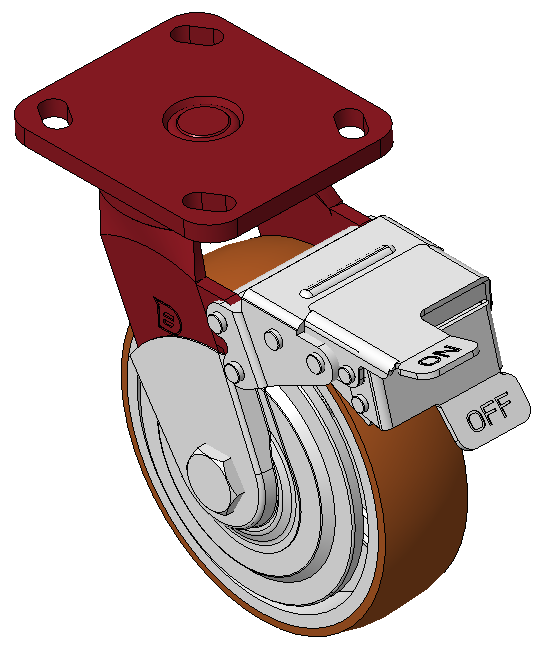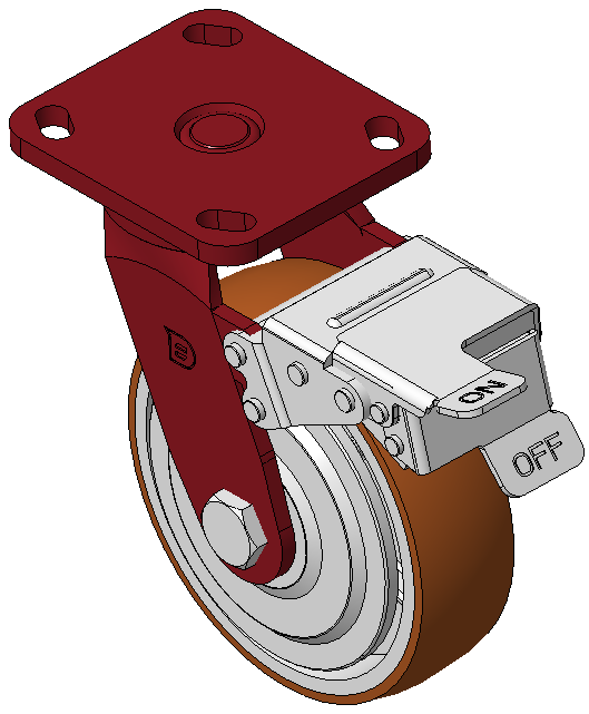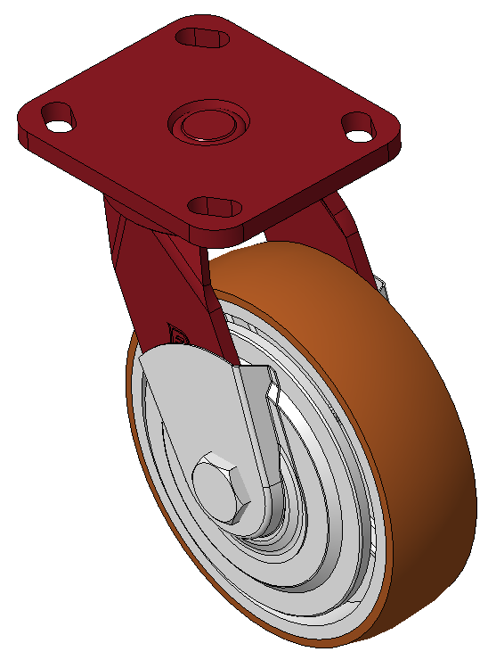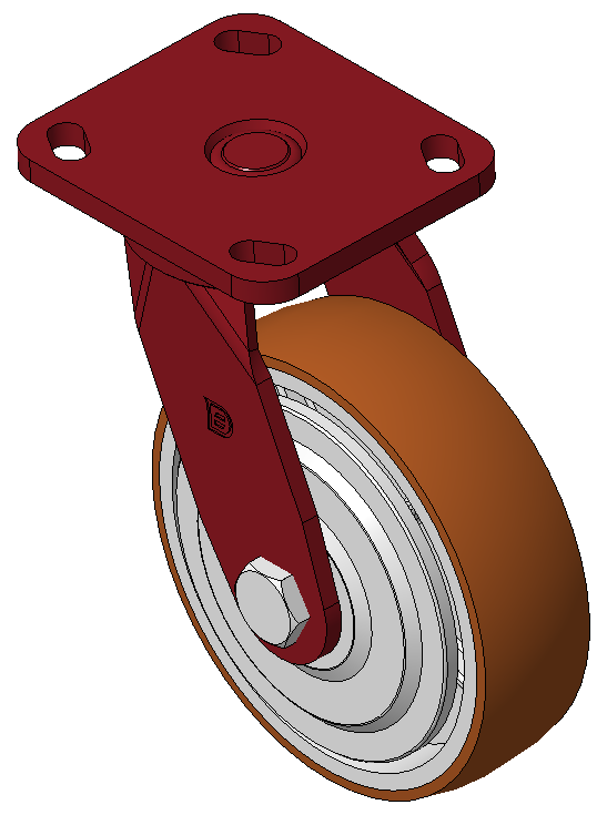 Bánh xe xoay với khung thép hàn, sơn phủ màu đỏ Lắp đế, khoảng cách lỗ 85x70 Lõi gang với gai polyurethane chất lượng cao, phay màu nâu Vòng bi bánh xe—vòng bi chính xác với nắp chống quấn đặc biệt |