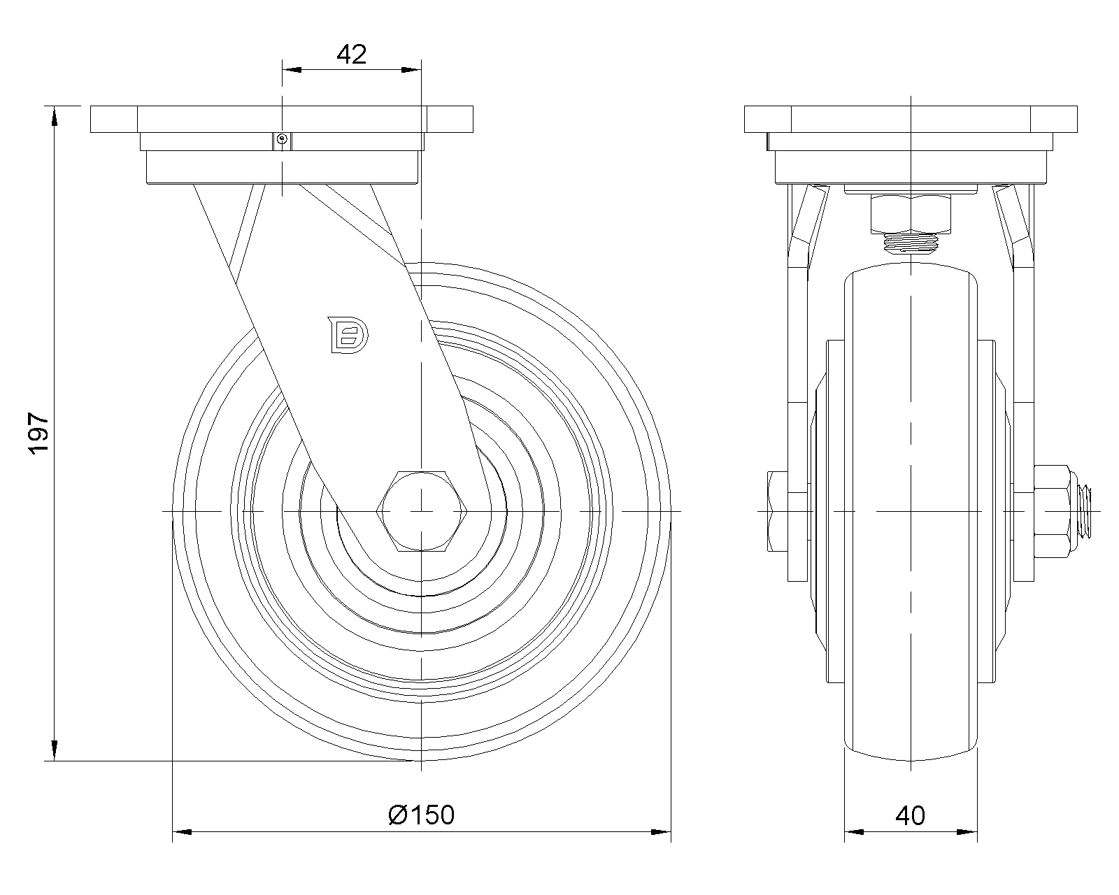 | Bánh xe MRC (trong suốt) Đường kính bánh xe × Chiều rộng bánh xe 150 x 40mm |