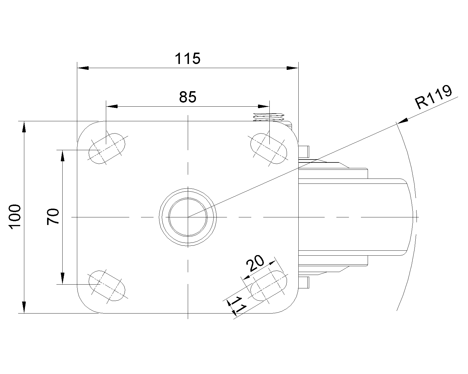 Bánh xe xoay, khung thép hàn, sơn đỏ Lắp đế, khoảng cách lỗ 85x70 Lõi bánh xe bằng nhựa nhiệt dẻo, gai bánh xe màu tự nhiên Vòng bi bánh xe—vòng bi chính xác |