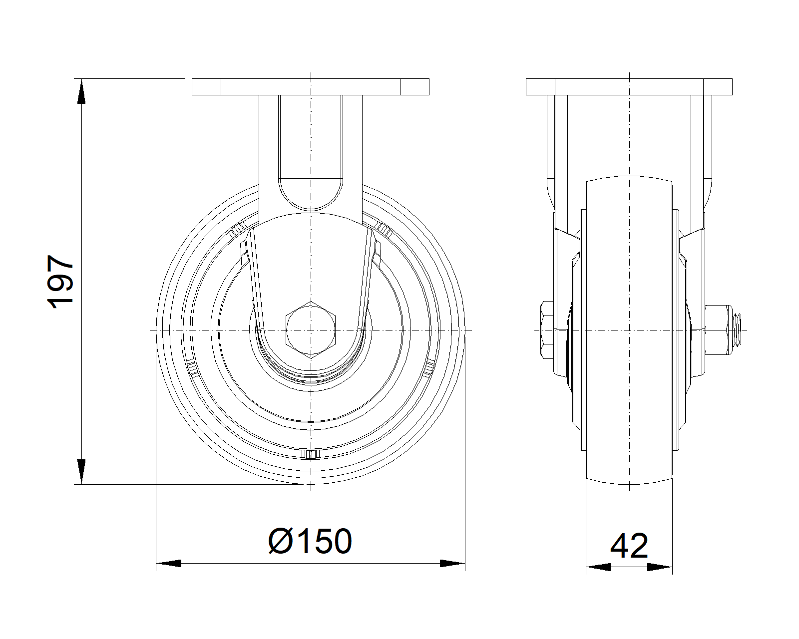 | Bánh xe PU (vòng cung đỏ) Đường kính bánh xe × Chiều rộng bánh xe 150x 42mm |