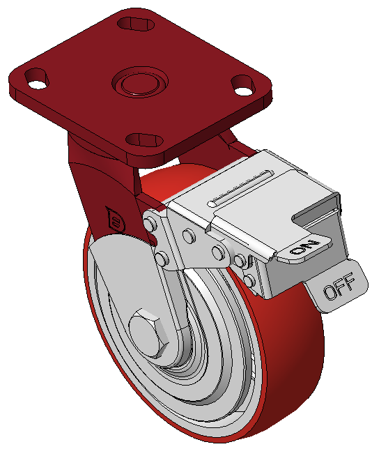 Bề mặt phun sơn đỏ, thiết bị lắp đặt tấm đáy, khoảng cách lỗ 85x70 Lõi bánh xe bằng gang, bề mặt bánh xe bằng polyurethane chất lượng cao, phay màu đỏ Vòng bi bánh xe—vòng bi chính xác với nắp bánh xe chống cuộn đặc biệt |