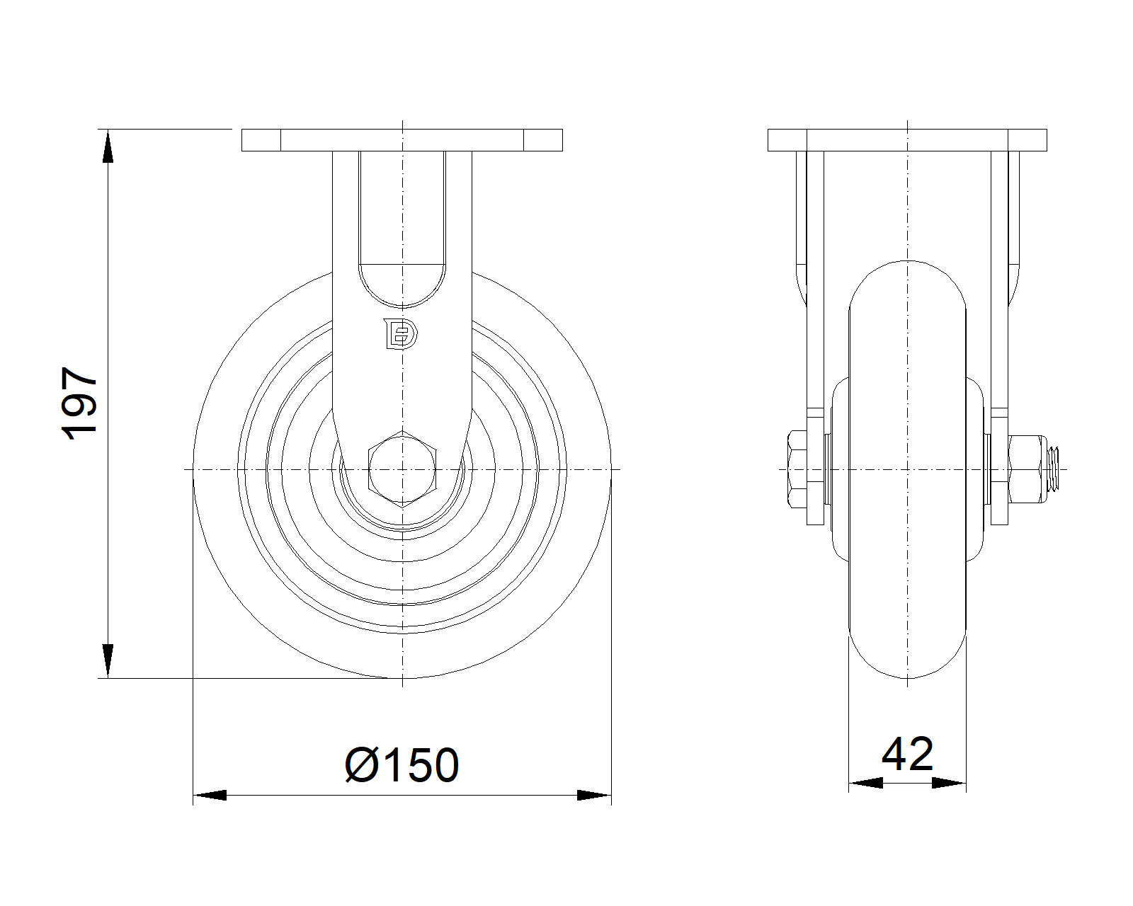 | Bánh xe EQPU (hồ quang nâu) Đường kính bánh xe × Chiều rộng bánh xe 150 x 42mm |