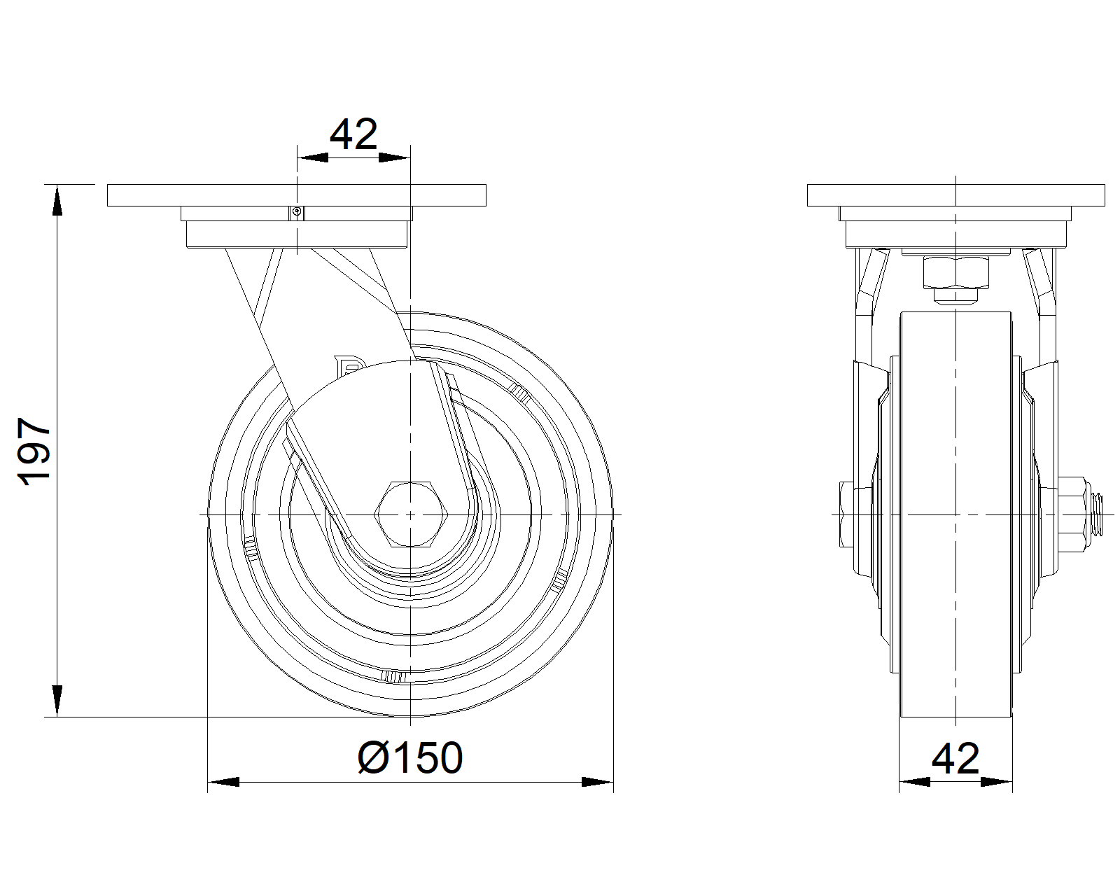 đơn vị mét đế quốc Đường kính bánh xe 150mm Chiều rộng bánh xe 42mm |