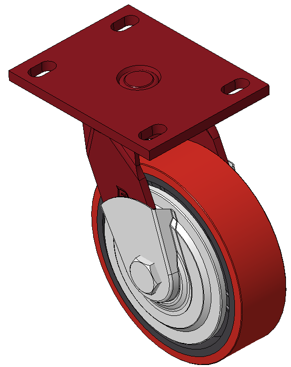 | Bánh xe xoay với khung thép hàn, sơn phủ màu đỏ.