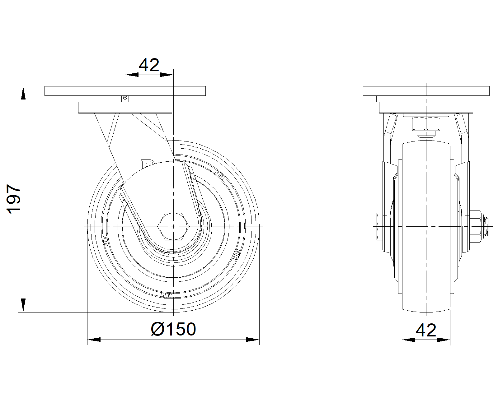 | Bánh xe PU (vòng cung đỏ) Đường kính bánh xe × Chiều rộng bánh xe 150x 42mm |