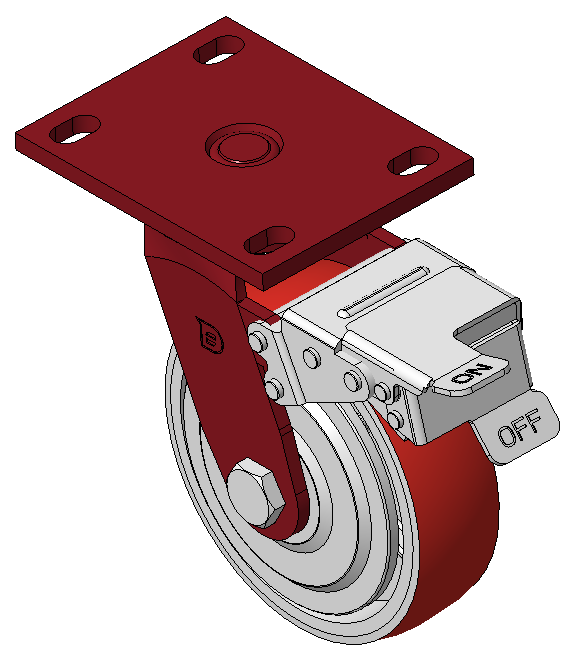 | Bánh xe xoay với khung thép hàn, sơn màu đỏ
