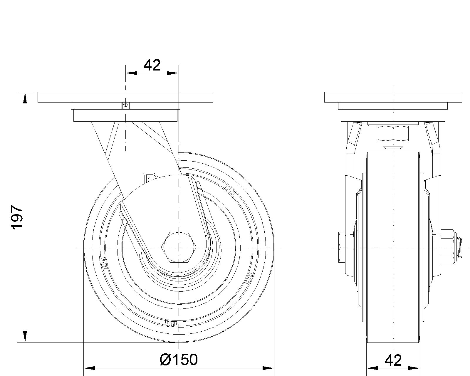 | Bánh xe QPU (nâu phẳng) Đường kính bánh xe × Chiều rộng bánh xe 150 x 42mm |