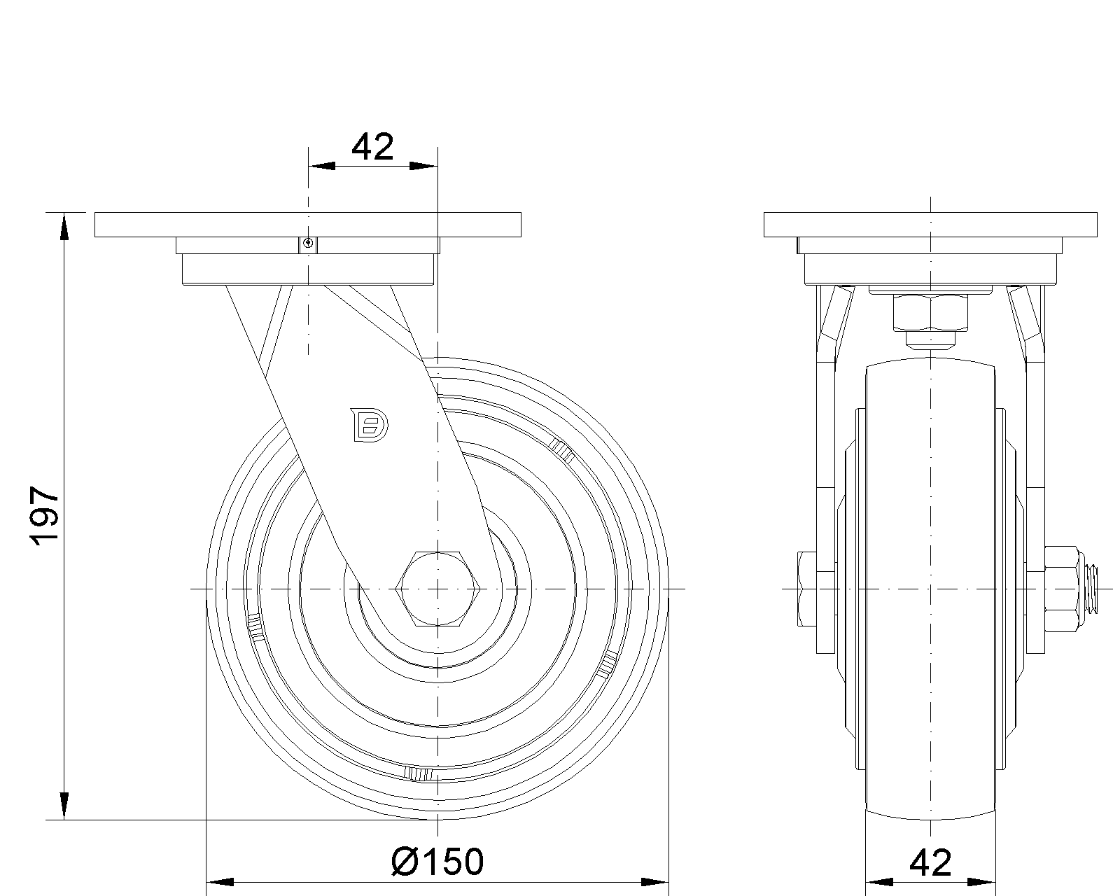 | Bánh xe QPU (Màu nâu vòng cung) đường kính bánh xe × chiều rộng bánh xe 150 x 42mm |