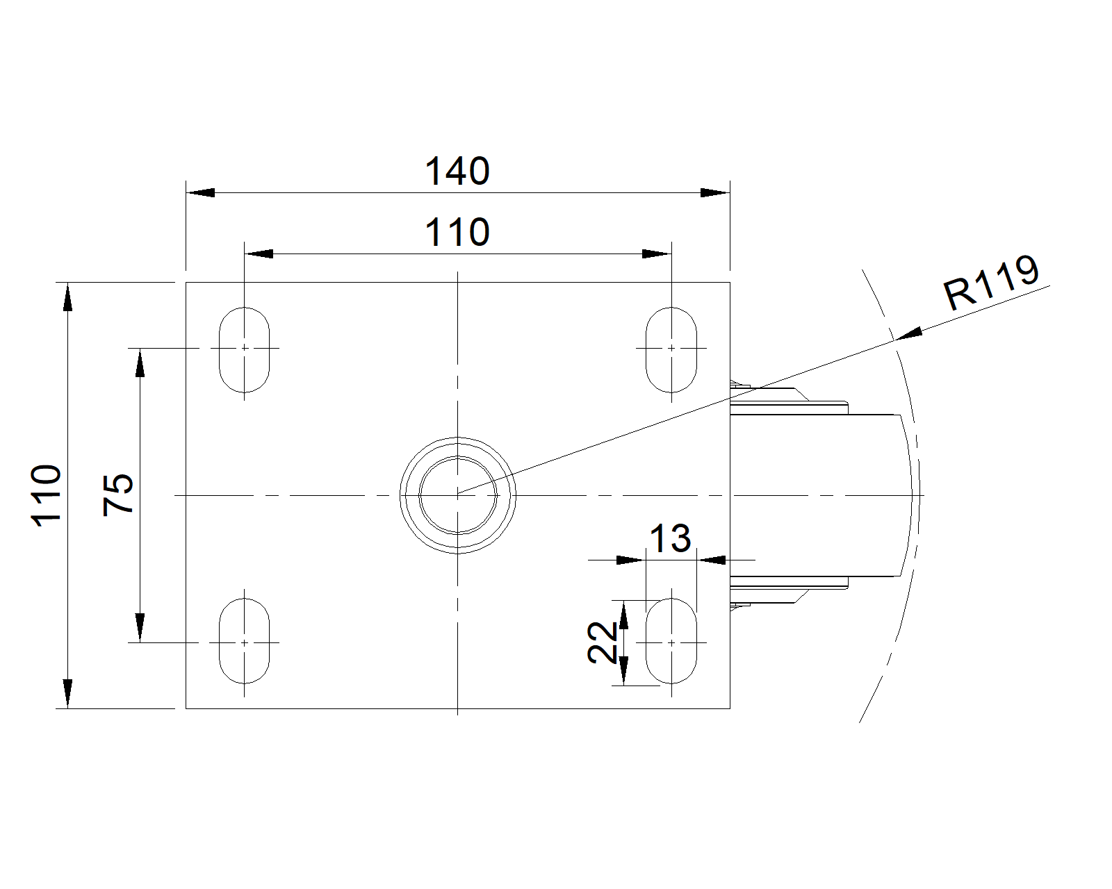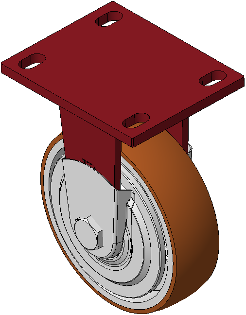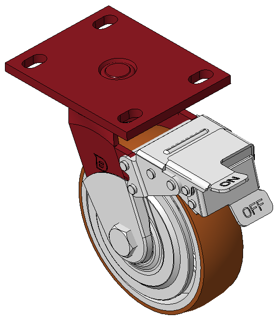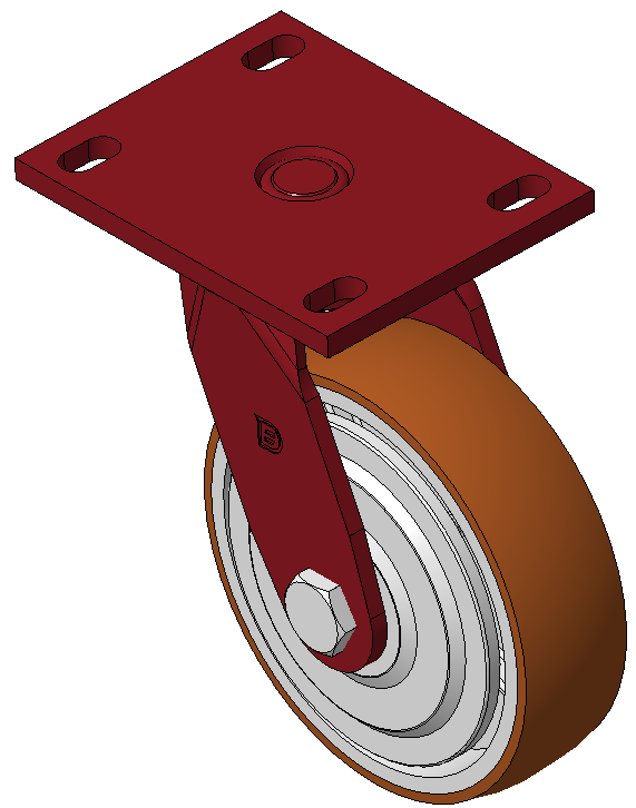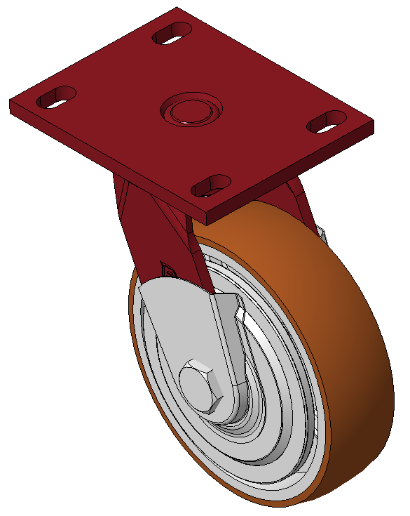 Lắp đế, khoảng cách lỗ 110x75 Lõi bánh xe bằng gang, bề mặt bánh xe bằng polyurethane chất lượng cao, phay màu nâu Ổ trục bánh xe - bi chính xác, có nắp bánh xe chống xoắn đặc biệt |