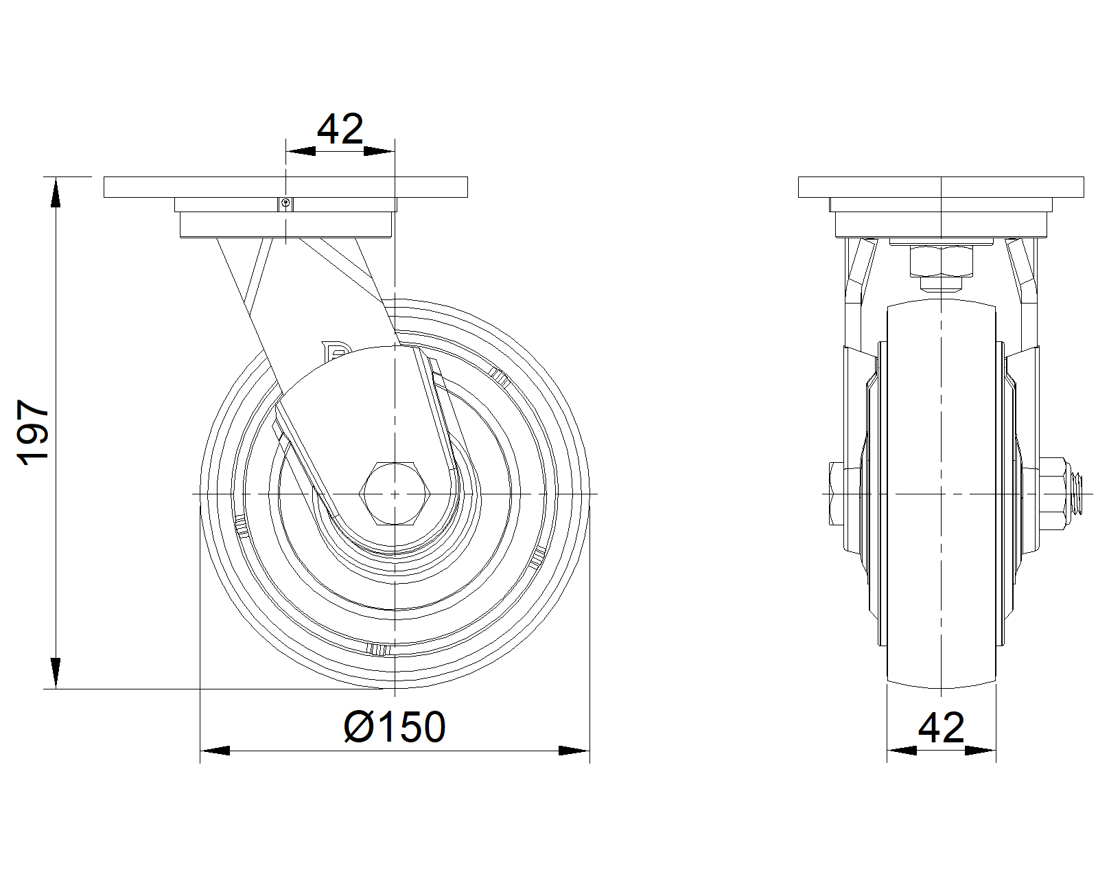| Bánh xe QPU (Màu nâu vòng cung) đường kính bánh xe × chiều rộng bánh xe 150 x 42mm |